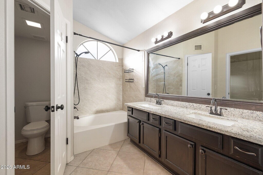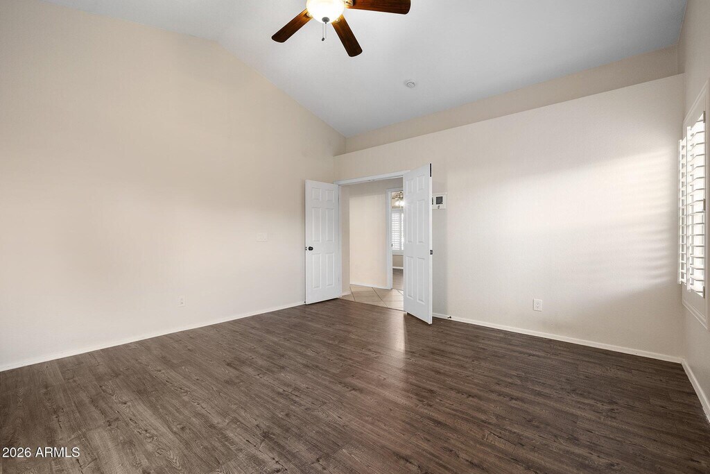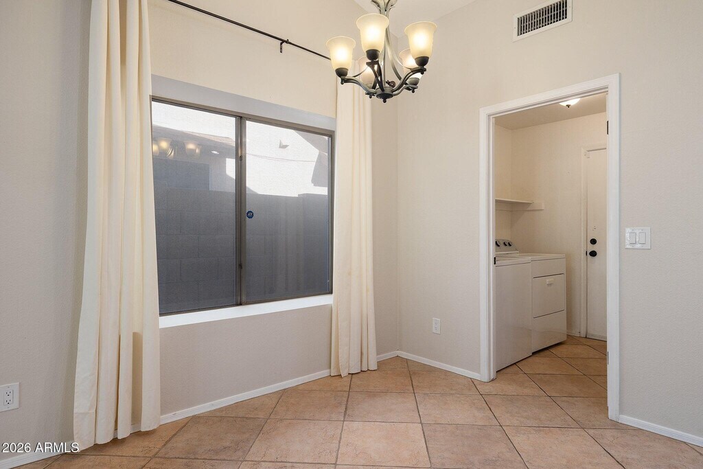 NO CATS ALLOWED PER OWNER. This home is in a highly sought out area. 3 Bedroom 2 bath home with a Family Room and Formal Dining area/flexible area. Wood burning Fireplace in the Living Room,French doors lead to the low maintenance back yard with a covered patio,patio pavers,artificial grass,raised flower beds/place to garden. Kitchen has plenty of kitchen cabinets,granite counter tops,an island,stainless Steel appliances,corner walk-in pantry. Inside washer and dryer. The primary bedroom has double door entry and a plant shelf in this large room. The primary bathroom has a barn door for privacy,dual sinks,granite counter tops,framed mirror and a garden tub/shower combination. Water closet. Plantation Shutters in most of the rooms. This is within the Kyrene School District (please confirm) Not Cats allowed and dogs would be considered but must be approved by the Landlord.