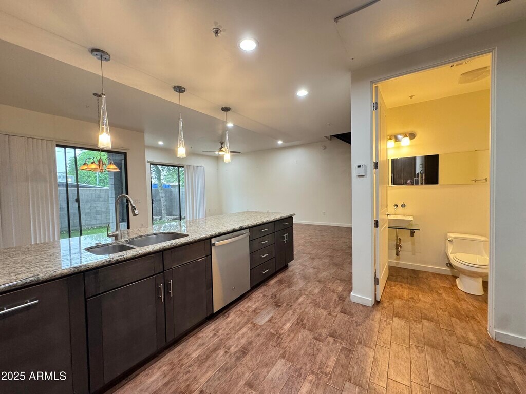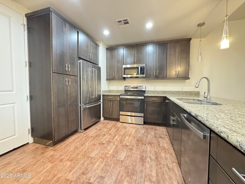 Beautiful upscale 3 bedroom 2.5 bath townhome in the Heart of Phoenix in a gated community. Unit is spacious with over 1800 sq ft of living space and 2 car garage. Open kitchen with espresso cabinets,lots of counter top space and stainless steel appliances. 3 bedrooms upstairs with ceiling fans and balconies off the front and back,Downstairs has ALL tile flooring and upstairs has laminate flooring,no carpeting in unit. Hurry before this unit is gone!