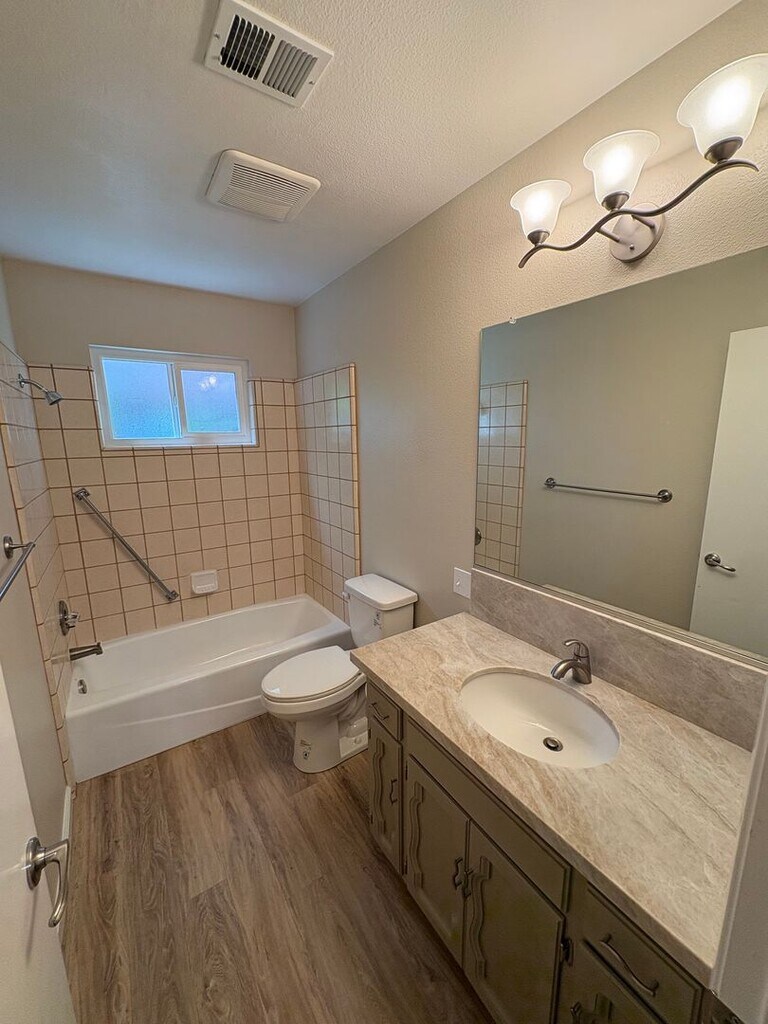 - laminate wood flooring in kitchen and bathrooms