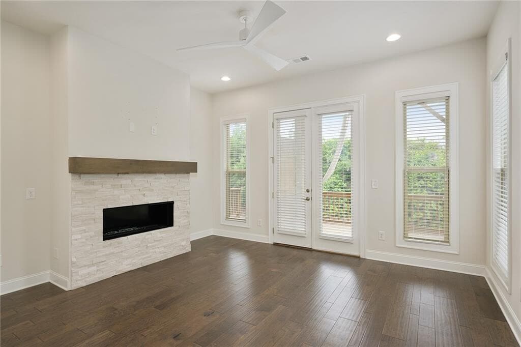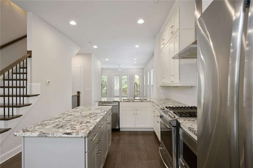 AVAILABLE now for easy move-in! Welcome Home to the Gated community of Townes at Chastain with a community POOL & green space! Newer END UNIT townhome in Sandy Springs with close proximity to Chastain Park overlooks community Pool! This exceptional townhome features an open floor plan w/10 ft ceilings,stone fireplace,hardwood flooring,& designer lighting. Abundant Natural light. Fireside Den opens to White Chef's Kitchen & large private grilling Deck for easy entertaining. Kitchen features granite counters,newer SS Appliances,sizable prep Island & separate Pantry. Many upgrades throughout! Large bedrooms with ample custom built closets. Huge Master Bedroom Suite with amazing ensuite Bath + second deck overlooking green plantings. Terrace level offers a Bonus room w/built in cabinetry and 1/2 Bath for the perfect work from home space. Two Car Garage + Driveway Parking. Ample onsite guest parking. So very convenient to shopping,groceries,eateries,& coffee houses! Minutes to interstate access.