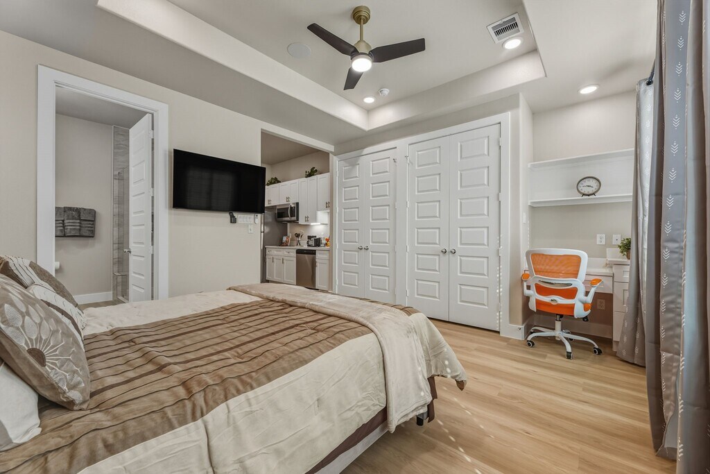 ALL Bills PAID + Fully Furnished Luxury Studio,ONLY 4.5 Miles to Med Center!***Step into this NEW 2025 built,tastefully decorated luxury studio that feels like a one-bedroom—fully furnished and ALL bills paid (gas,water,electricity)! Enjoy a sleek and spacious kitchenette with quartz countertops,42” white cabinets,under-cabinet lighting,dual electric cooktop,sink,full-size dishwasher,microwave,and refrigerator + a stackable washer/dryer for true convenience. The bedroom space features a queen-bed with color-changing LED lights,Bluetooth ceiling speakers,TV,a study-area,and a separate sitting space for two. Luxury vinyl floors,blackout + sheer curtains,and a cozy en-suite bathroom with separate Dual Rain-Showers and Dual Shampoo-Niches. It's near the 610-Loop & 288,just 4.5 miles to the Medical Center and under 20 minutes to Downtown,Stadiums,Malls,Universities,Zoo,Museums,and the Theater District. Make this furnished,ALL-Bills-PAID luxury studio yours today! MLS# 16780875