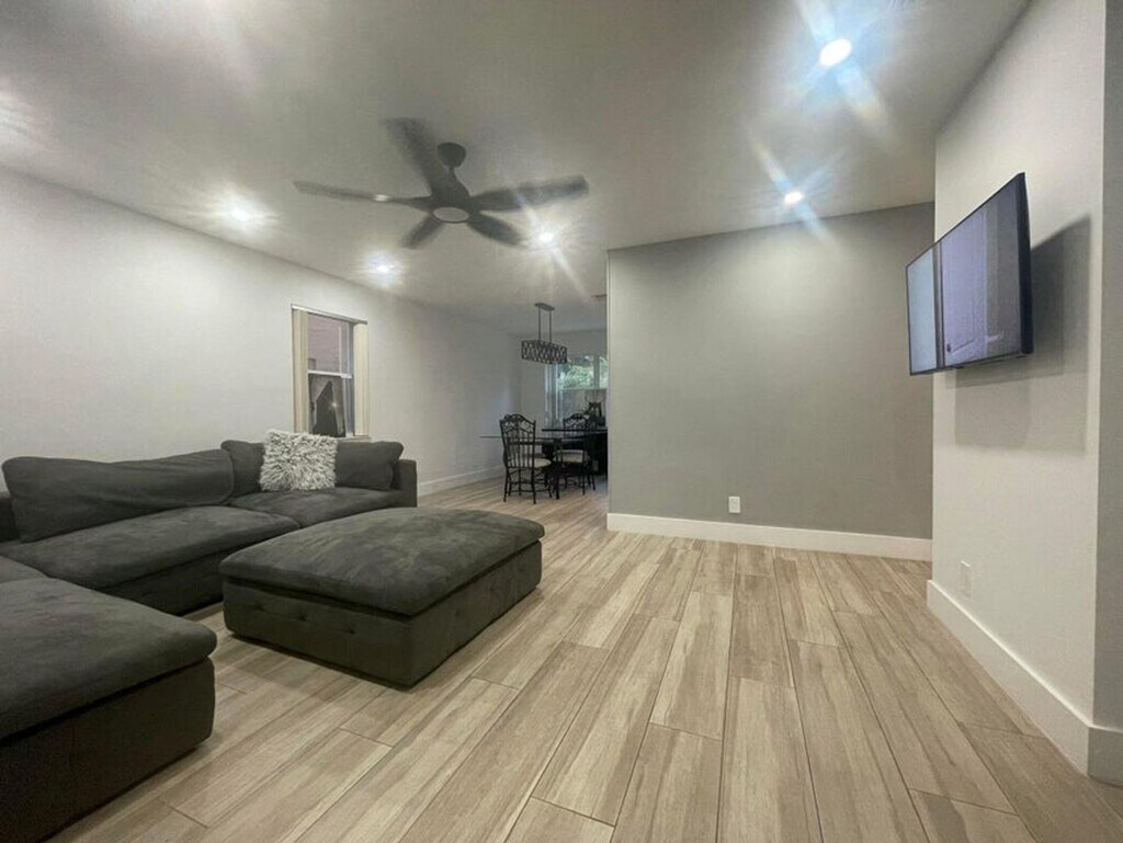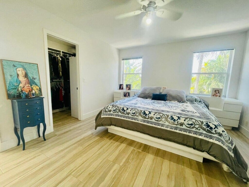Courtesy of Max C&T Realty LLC Posted by Andrew Coleman with EXP Realty . Gorgeous CBS 4-bedroom 2.5-bath home, perfectly situated in a lovely gated community. A lot of upgrades on this house such as, nice looking wood porcelain tile downstairs & upstairs, recessed lights, New Baseboards, New Painting & No Popcorn in the entire home. Landlord has remodeled the whole Kitchen being very spacious w/ beautiful granite, SS appliances, wood white cabinets. All Bedrooms upstairs have customized closets. One car garage & open driveway that can fit at least 3 extra cars. One of the biggest backyard in the community, offers fruit trees & a Coconut Tree. Large lot where you can enjoy your barbecue. Perfect Location close to everything and across QW Elementary school! Community has Swimming pool, playground to kids & nice Lake to enjoy! Only 3.8 Miles distance to the beach.
