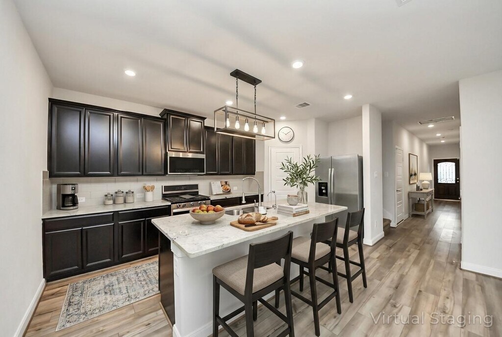 Welcome to this impeccably designed 5 bedrooms,4 bathrooms residence in Katy’s desirable Pointe community. Offering 2,812 sq. ft. of modern,move-in-ready living space,the home features durable vinyl plank flooring throughout the main level and plush carpeting in the primary suite,sprinkler system,complete gutters installation,whole house water softener. The thoughtful open-concept layout is perfect for entertaining. The main floor hosts the primary suite complete with a spa-inspired bathroom featuring a soaking tub,walk-in shower,and oversized closet,as well as a convenient secondary bedroom with a full bath. Upstairs,a versatile game room and an additional family living area provide flexible space alongside three secondary bedrooms,and two full baths. Katy Pointe is perfectly situated near the Grand Parkway and Katy Freeway,this home provides quick access to premier shopping,dining,and transit within Katy ISD top-rated school district. MLS# 23591550