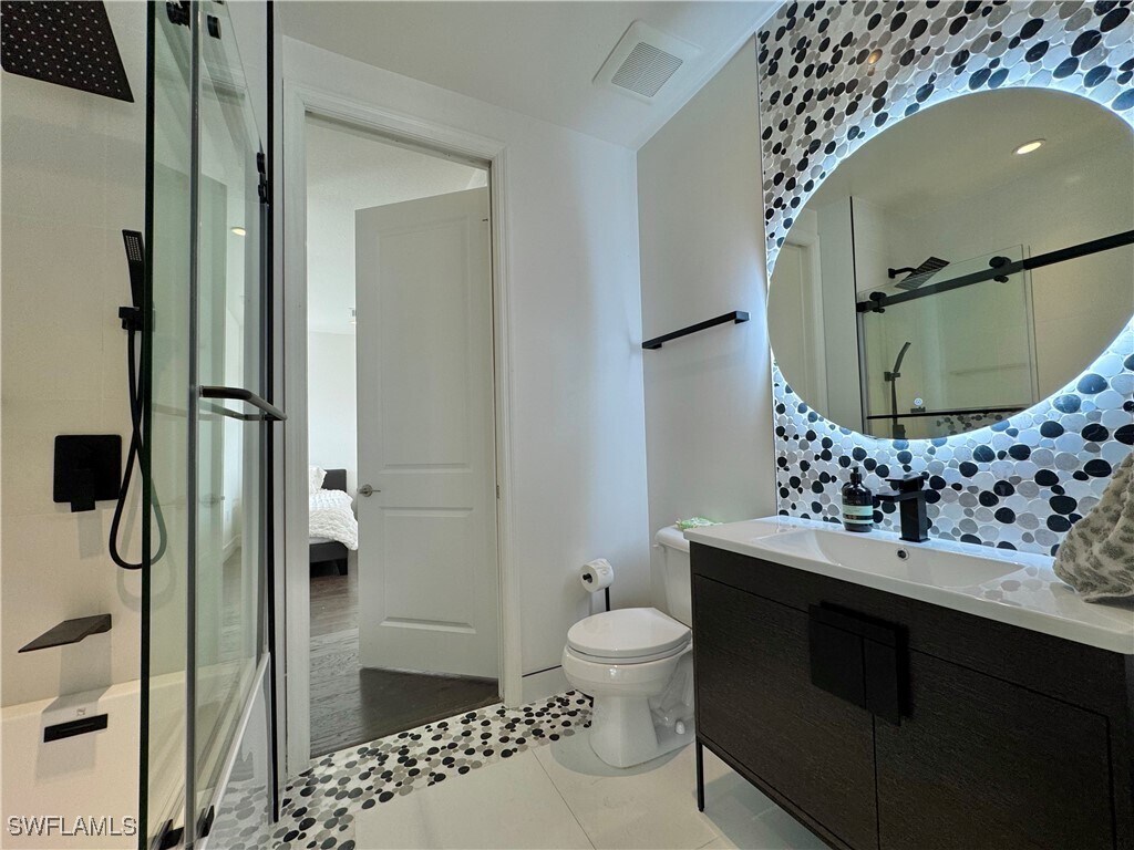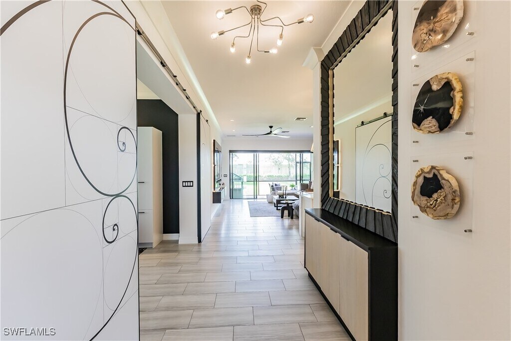 This one-of-a-kind contemporary luxury home is situated at the end of a cul-de-sac in the highly sought-after Stonecreek Community,North Naples. Steps away from world-class amenities,including a fitness center,indoor/outdoor basketball courts,resort-style & lap pools,hot tub,splash park,tennis courts,on-site security,and more! The oversized lot provides backyard privacy,a huge side yard,an extended driveway with additional parking,and an expanded main entry walkway. The home boasts a whole-house generator,reverse osmosis water filtration,security system,outdoor security cameras,plantation shutters throughout,two dual zone HVAC systems,and an Aroma360 home scenting system. The custom entryway reveals an open first-floor plan that includes a bar with hidden mini fridge; well-appointed kitchen; office/den that converts to a guest room,bedroom number five; luxurious owner's suite and primary bathroom; huge great room with a 65” smart TV; oversized sliding glass doors with motorized solar shade opening to a screened-in patio; unique guest bathroom; and laundry room with additional storage. The second floor offers an open loft,three bedrooms,and two newly upgraded bathrooms.A+ school zone.