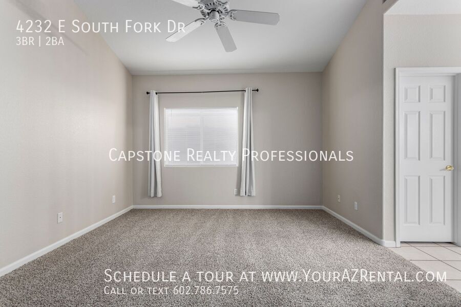 There is currently a 3 Bed 2 Bath Home for rent with 1,474 sq ft listed at 4232 E South Fork Dr. It is Available Now.