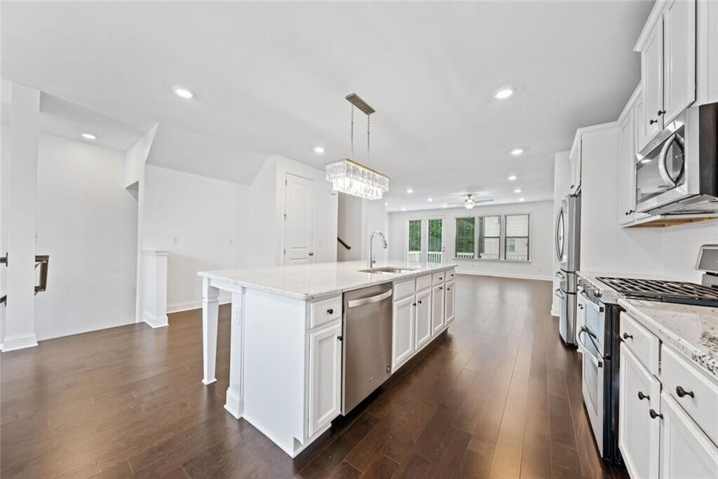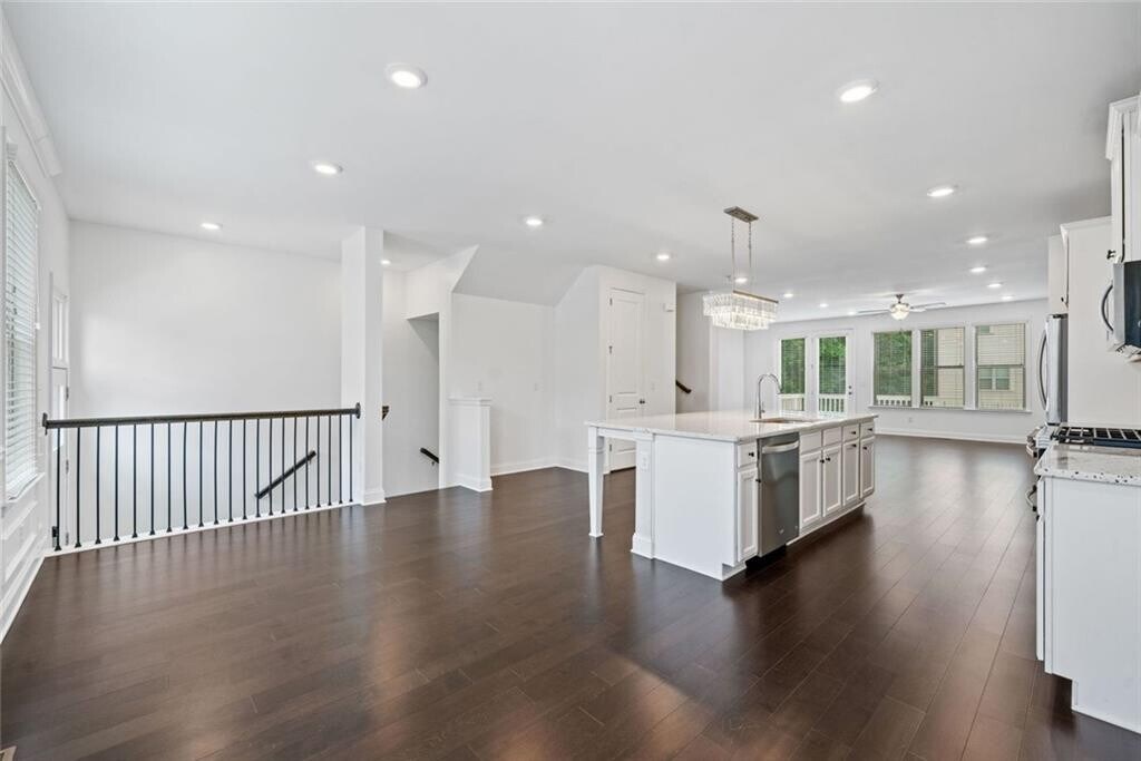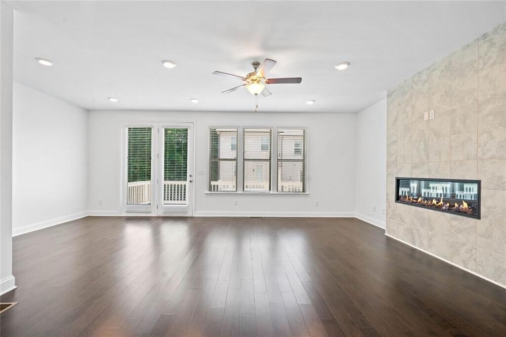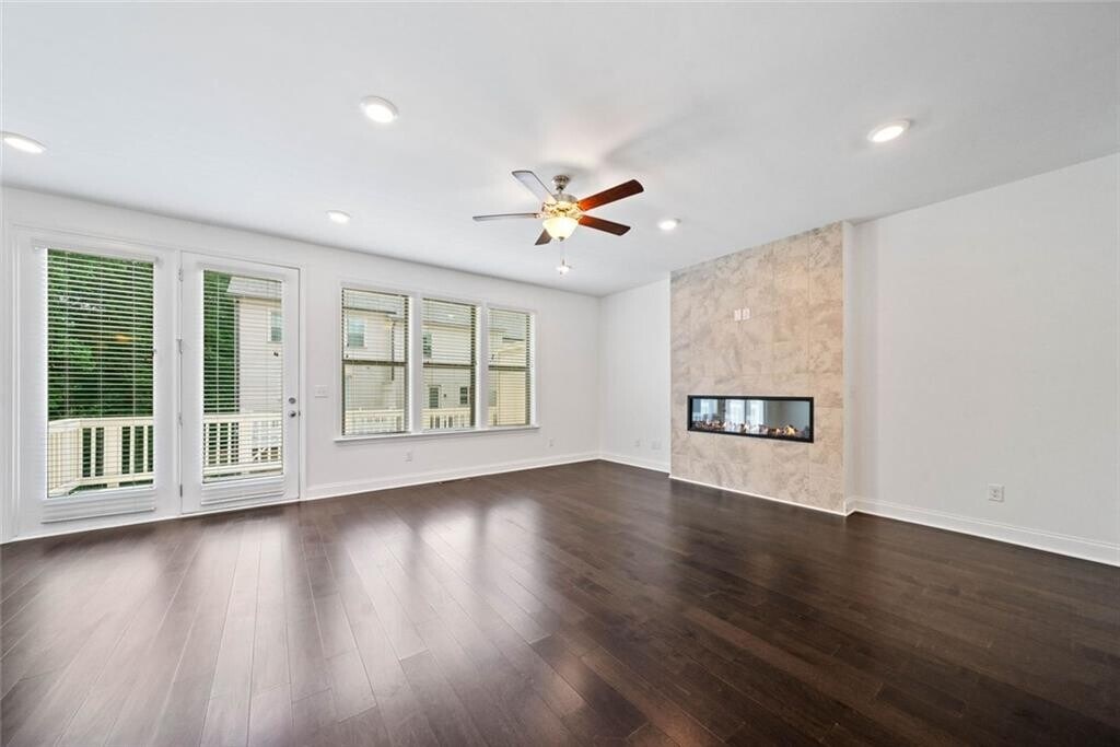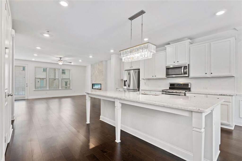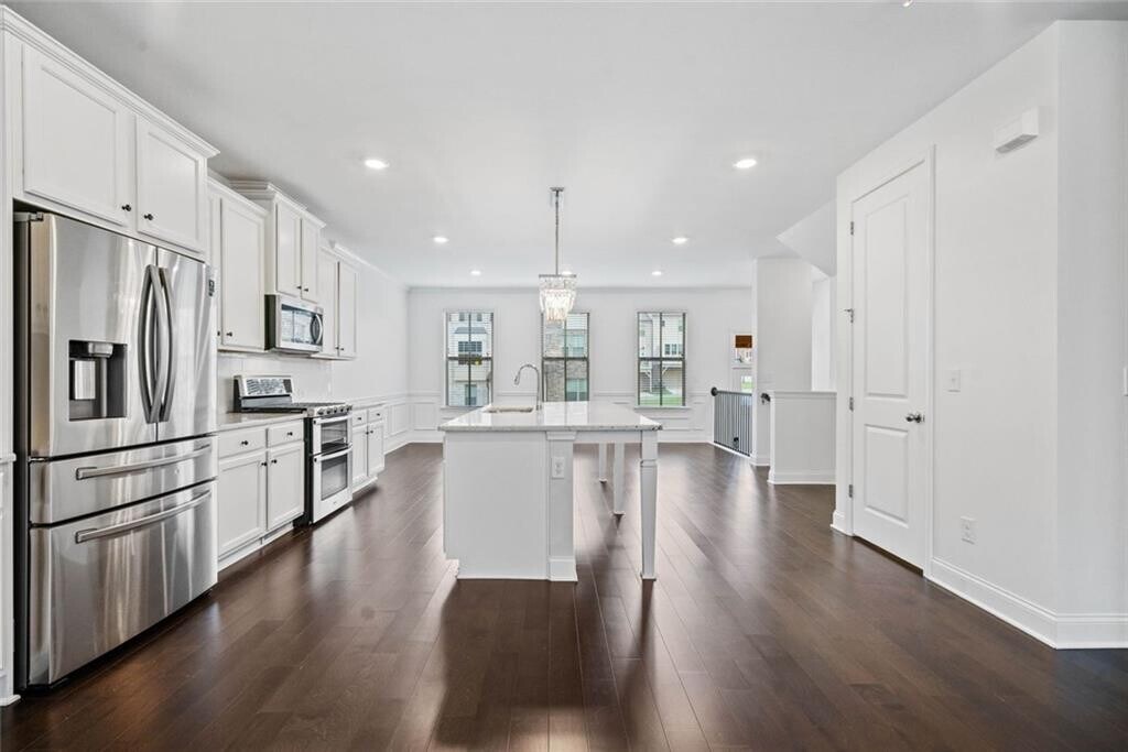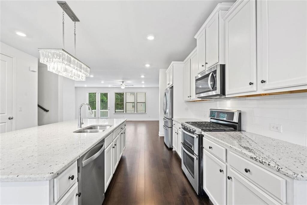 FRESH PAINT,PROFESSIONALLY CLEANED,READY FOR IMMEDIATE MOVE-IN! Built in 2021,this luxury 4-bedroom,3.5-bath townhome in a gated community near Perimeter/Dunwoody. The home offers quick access to Perimeter Mall,Sandy Springs,Buckhead,and Peachtree Corners,with convenient proximity to I-285,Highway 141,and SR 400. This three-level townhome features an open floor plan with 10-foot ceilings,large windows that provide abundant natural light,and hardwood flooring throughout,bedrooms has freshly steamed carpet. The gourmet kitchen boasts an oversized island,42-inch cabinetry,granite countertops,a subway tile backsplash,stainless steel appliances,and a walk-in pantry. The family room includes a designer linear fireplace,adding warmth and style. A private deck off the back is perfect for outdoor dining or relaxation. The spacious primary suite includes a large walk-in closet,double vanities,and an oversized shower. Two additional upstairs bedrooms feature upgraded bathrooms and walk-in closets. The laundry room offers extra shelving,and a brand new LG washer and dryer. The terrace level includes a full bedroom with a walk-in closet and ensuite bath,making it ideal as a guest suite,flex space,or bonus room,with a large storage closet. Community amenities include a resort-style pool with private cabanas,a grilling area,a firepit,a cornhole area,a playground,and wide streets with ample guest parking. The home is also near Assembly Studios Atlanta,the Farmers Market,H Mart,and shopping and dining at The Forum on Peachtree Parkway and Perimeter Mall. Corporate offices for State Farm,Mercedes-Benz,and IHG are also nearby. Located in the sought-after Dunwoody High School district. Schedule a tour today.