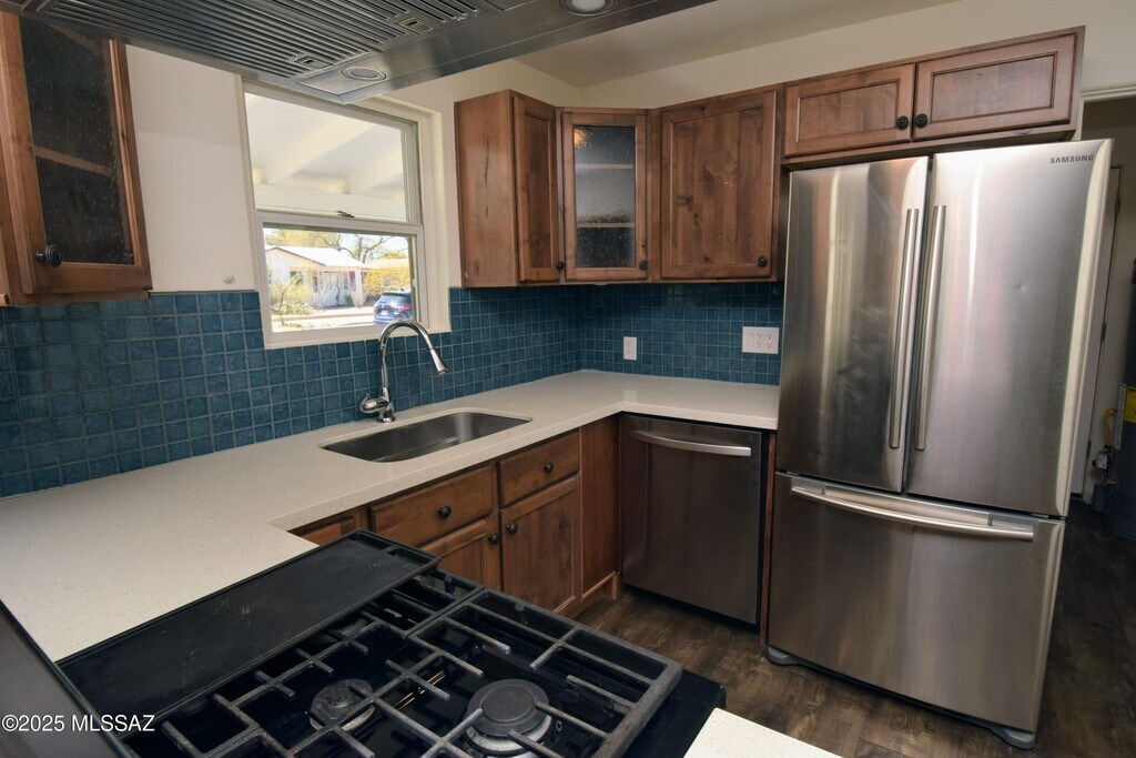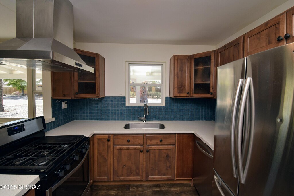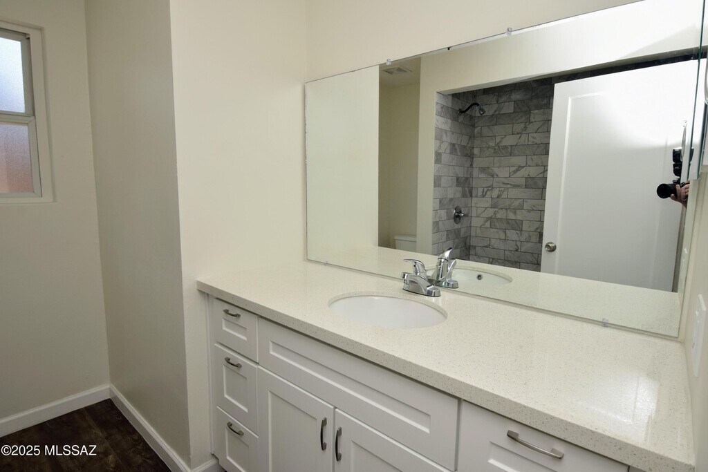 Experience contemporary living in this beautifully renovated 3-bedroom, 2-bath home in central Tucson. Every inch of this residence has been upgraded with all-new flooring, paint, fixtures, windows, bathrooms, and kitchen for a fresh, move-in-ready feel. Property Highlights LPV flooring throughout for durability and style Stunning kitchen with walnut cabinets, stainless steel appliances, 5-burner gas stove, aqua tile backsplash, and quartz countertops Both bathrooms fully remodeled with modern fixtures, vanities, marble surrounds, and quartz counters Spacious flex space featuring a tongue and groove vaulted ceiling-perfect for a home office, studio, or lounge Ceiling fans in every room and Central A/C & heat Full-size washer and dryer included