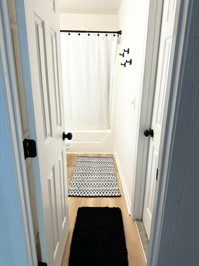 Bedroom in beautifully renovated Townhome with laminate floors everywhere except bedrooms and 2nd floor hallway. Only 5 minutes from UNC. Very quiet cul-de-sac convenient to shopping, food, etc. Serene, shaded, fenced rear patio/deck with firepit. Remodeled bathroom shared with 1 other person features a backlit touch enabled mirror. Bedroom, bath, and shared laundry on 2nd floor. Modern shared Kitchen and Living area. Smart Lock on front door.