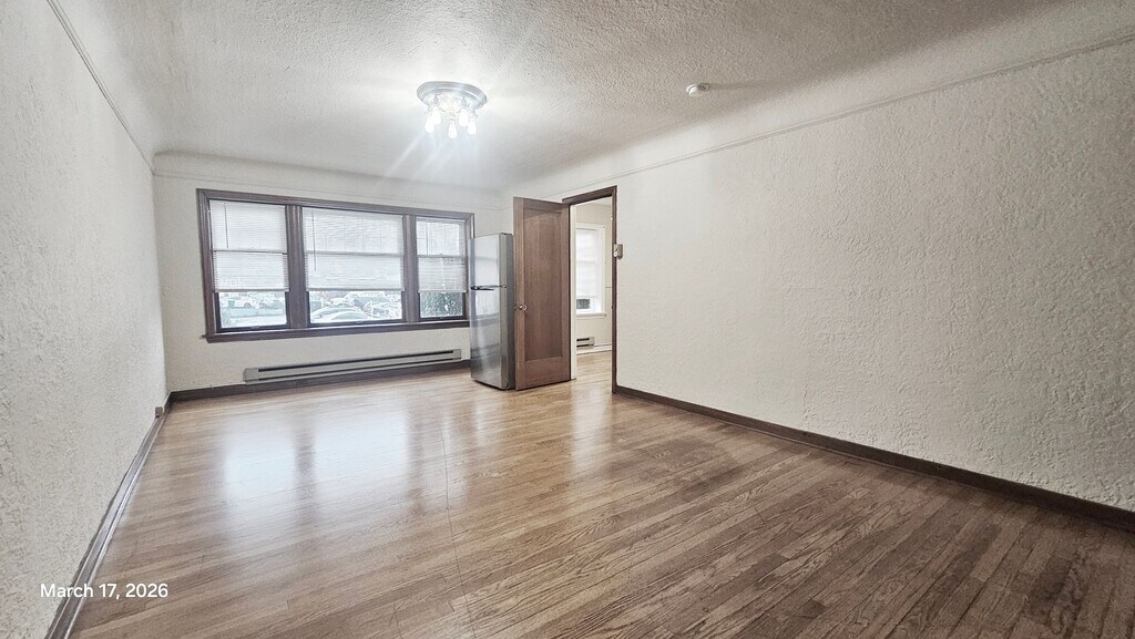 Beautiful vintage studio condo in the Varsity Arms. Features include over 544 sqft, hardwood flooring and original tile throughout, original Mahogony trim. Large living space with massive walk-in closet. All just literally 2 blocks from the University of Washington campus. Coin operated laundry in building. Street parking only. First, last and security deposit of equal amount. $45 application fee per adult. One time move in fee of $250. Rent include water/sewer/garbage. Tenant responsible for electricity. no pets. no smoking. Please contact us to schedule a showing, applications can be found at