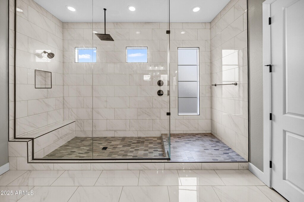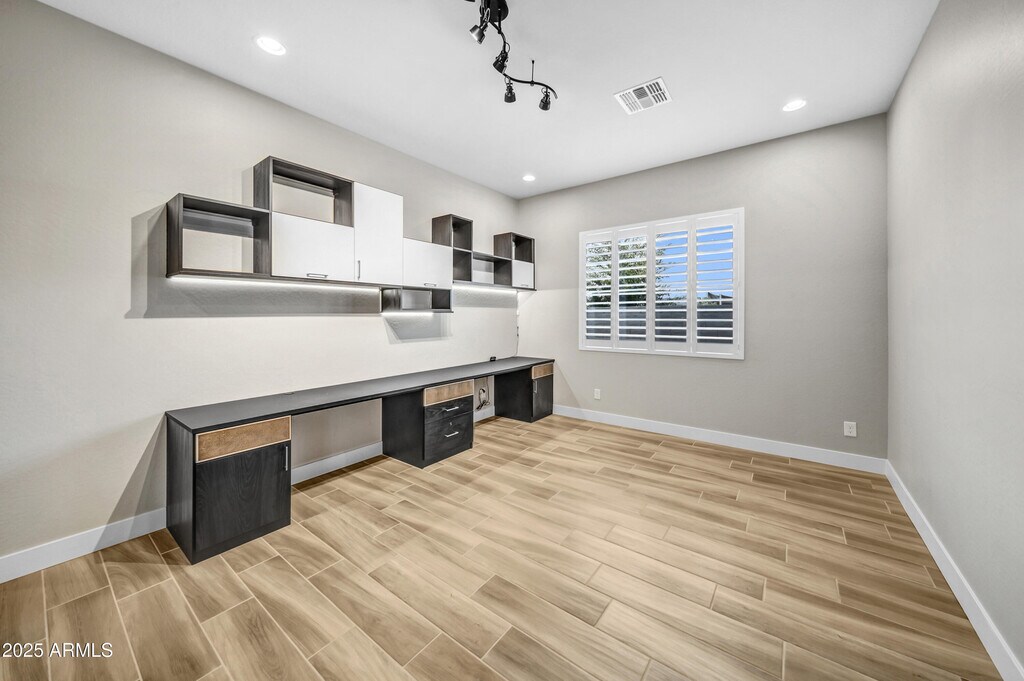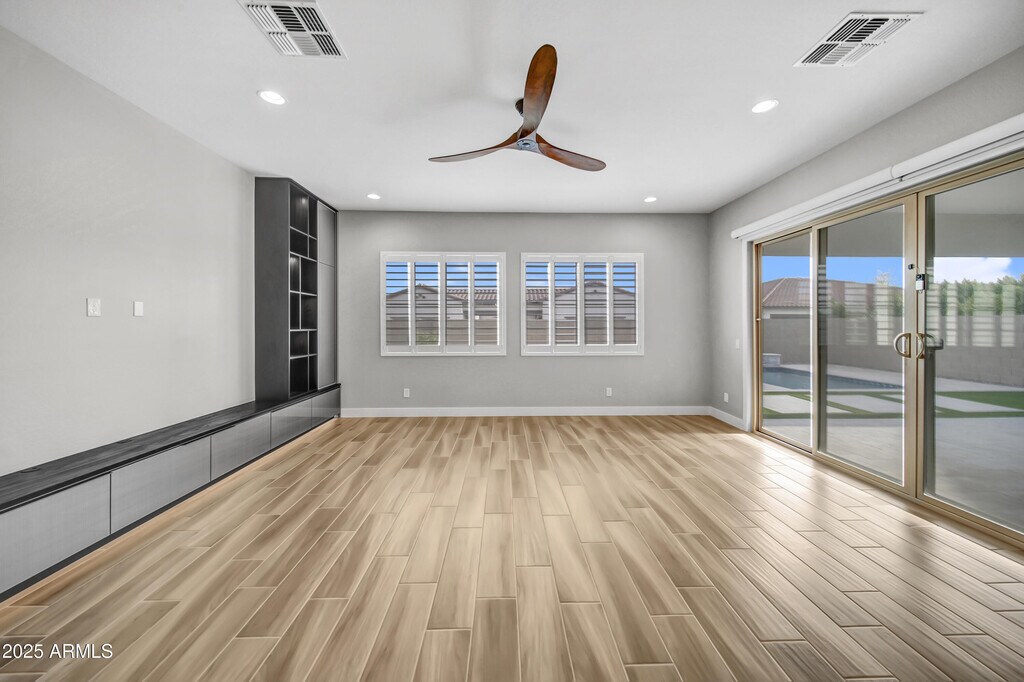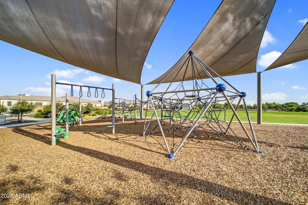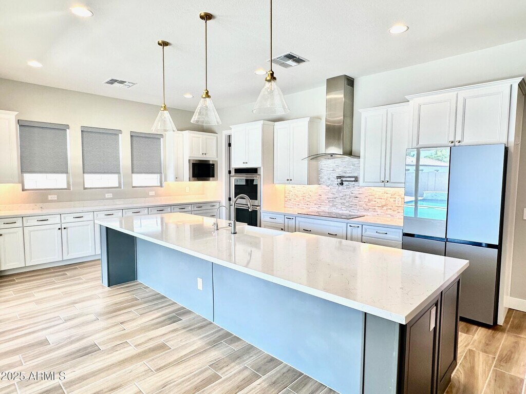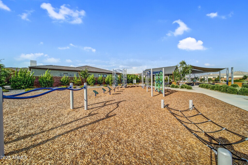 A beautiful single-story home in a highly sought-after gated community in Chandler. Built in 2021 and meticulously maintained by homeowners. Offering 5 bed,4 bath,a den,a flex room with double built-in desks,open concept living room,a 4 car-2 separate garages(240V outlet built-in for EV). The backyard features a large pool with a huge covered-patio,built-in grill perfect for entertaining,artificial grass for low-maintenance. Inside,enjoy a chef's kitchen with double ovens,a wine cooler,and a large pantry. RO water,water softener,washer/dryer,ceiling fans in each room,automated blinds to enjoy the beautiful sunset. This serene,family-oriented community is surrounded by A+ rated CUSD schools,Charter schools,and walking distance to Veteran Oasis Park and close to 202 highway