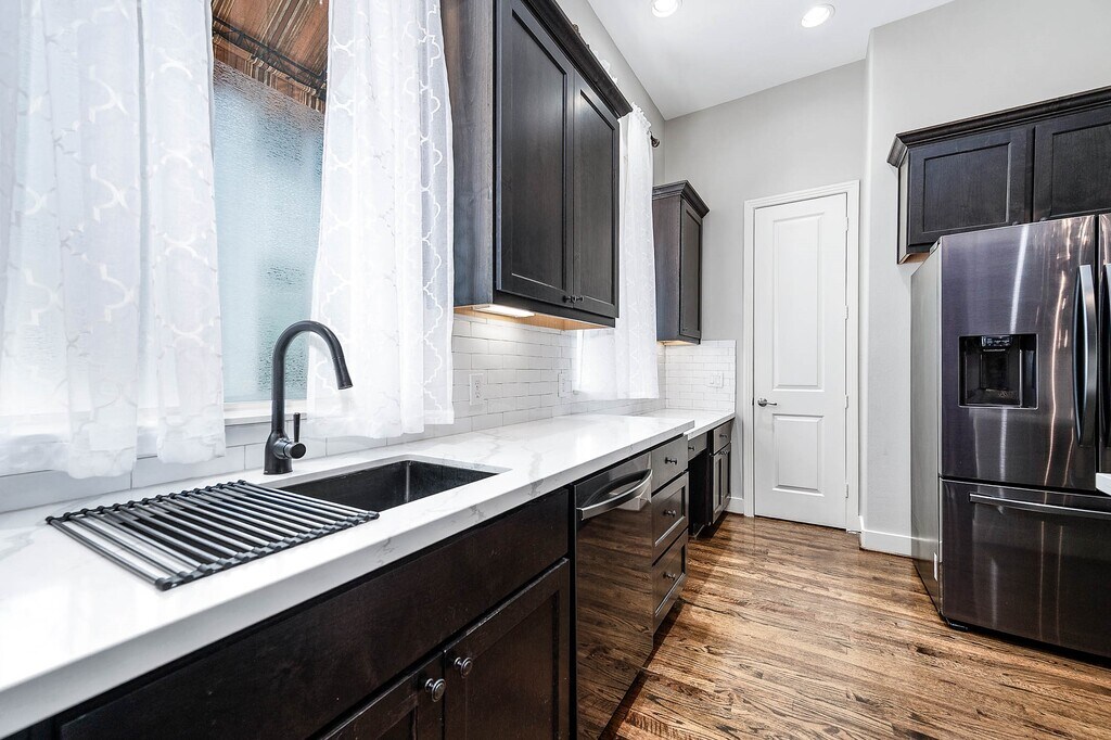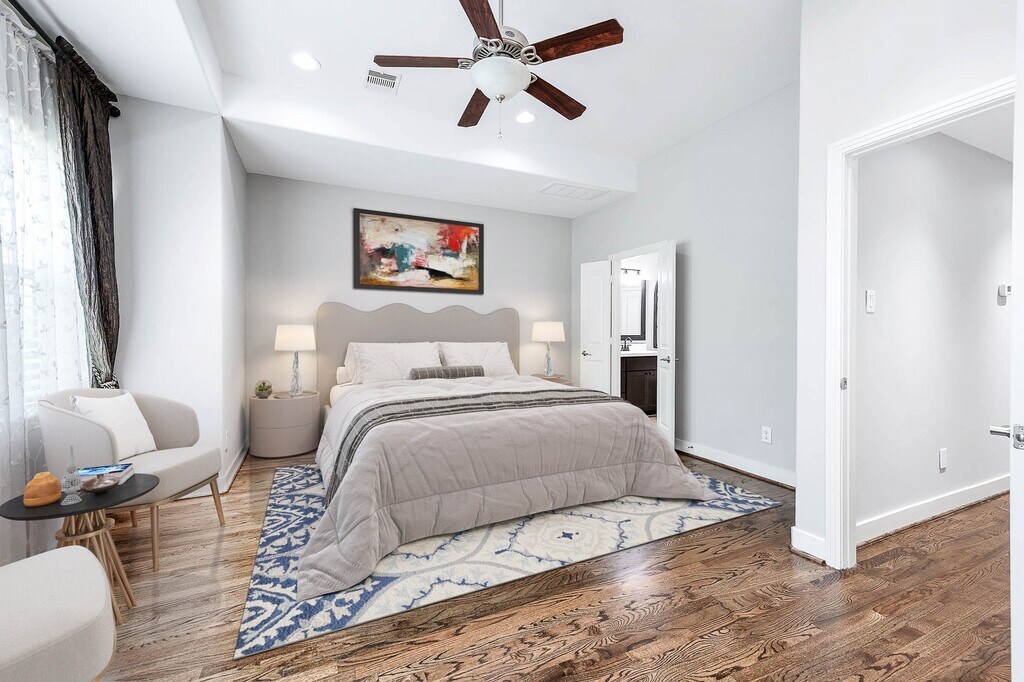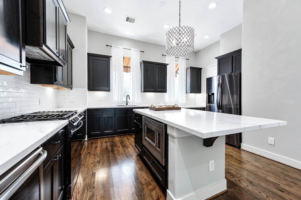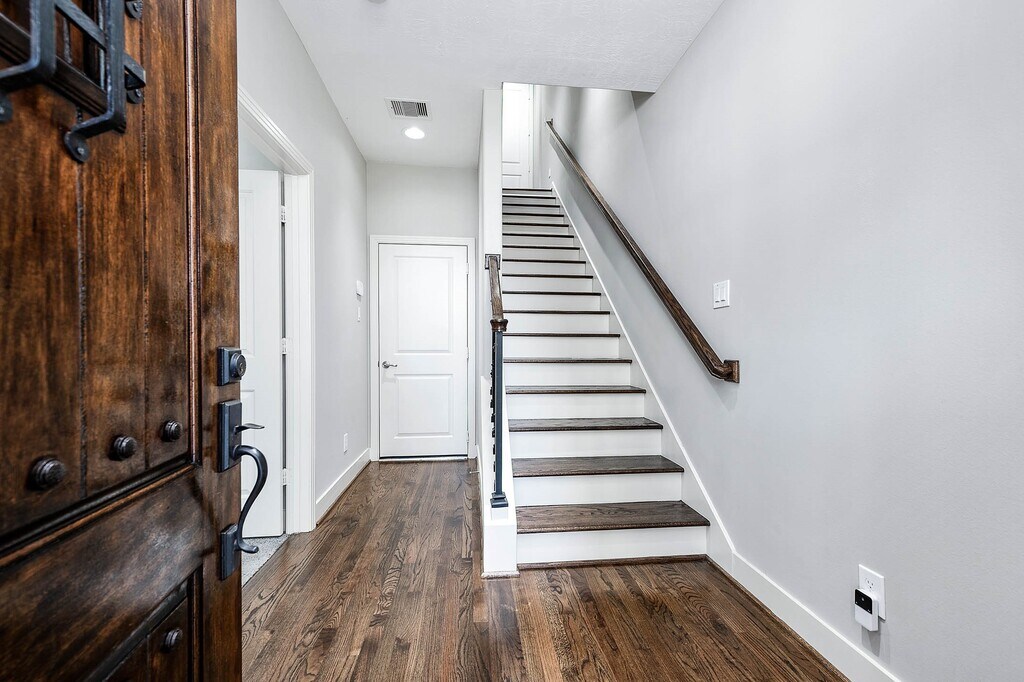 Welcome to this beautifully updated townhome featuring 3 bedrooms and 3.5 baths. The first floor offers a private bedroom with ensuite bath,perfect as a guest suite,office,or flex space. The second level boasts an open-concept living,dining,and kitchen with soaring ceilings,custom window coverings,balcony access,and a half bath for guests. The kitchen shines with quartz countertops,spacious island,stylish backsplash,custom hardware,and newer stainless-steel appliances. Elegant crystal chandeliers in the kitchen and living room add a touch of sophistication. Upstairs,the primary suite is a true retreat with dual sinks,soaking tub,separate shower,upgraded mirrors and fixtures,and an oversized walk-in closet. A third bedroom,full bath,and laundry with stackable washer,drawer,and shelving complete the third floor. Conveniently located near H-E-B,Jackson Hill Bridge to Buffalo Bayou Trails,Cleveland Park,and just six minutes to Downtown. MLS# 61995613