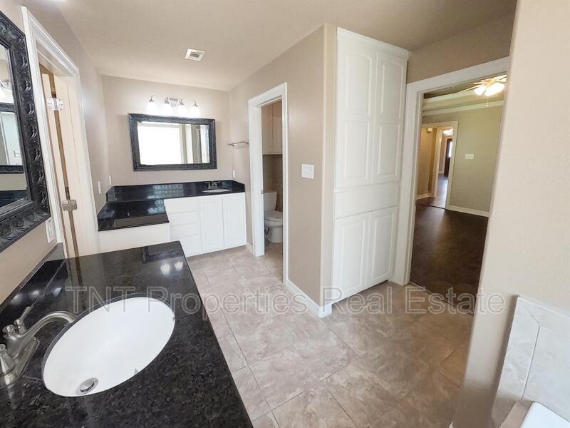 NOW LEASING FOR March 2026 MOVE-IN!!! Looking for a spacious and beautifully designed rental property in College Station, Texas? Look no further than 4235 Rocky Rhodes Drive! This stunning custom home in the desirable Castle Rock community features 3 bedrooms, 2.5 bathrooms, and an additional study, providing plenty of space for you and your family. As you enter the home, you'll be greeted by beautiful wood floors that extend throughout the entry, study, living area, and master bedroom. The kitchen is a chef's dream, with custom wood cabinets, a walk-in pantry, stainless steel appliances, an eating bar, and gorgeous granite countertops. You'll have plenty of space to store your groceries and cooking essentials with additional pantry/closet space in the utility room. The guest bedrooms are equally impressive, with each featuring its own sink and walk-in closet, connected by a shared bathroom with a toilet and tub/shower. The master suite is a true retreat, complete with wood floors, a remodeled bathroom with a luxurious tile shower, a separate soaking tub, two sinks, and a vanity area. But that's not all – this home also includes an additional study with a glass front door, perfect for those who work from home or need a quiet space to focus. And when you're ready to relax and unwind, head to the community pool for a refreshing swim. Don't miss your chance to make this stunning home your own – schedule a viewing today!