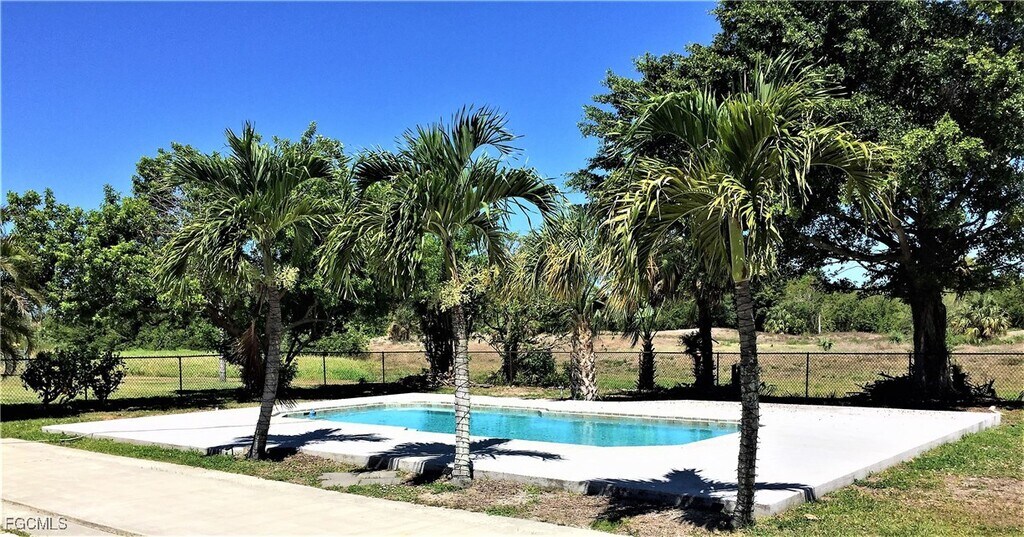 Pool home available in Cape Coral featuring split floor plan with three bedrooms,two bathrooms,screen lanai and one car garage. Over-sized and fenced backyard with mature trees and vegetation backing up to the old City of Cape Coral golf course. Huge swimming pool with monthly service included!