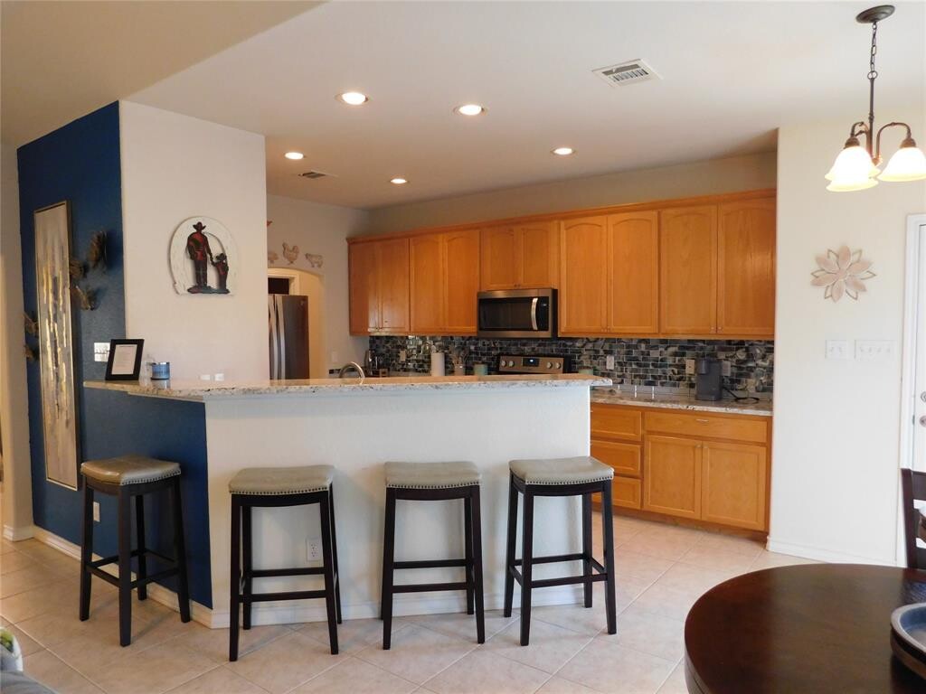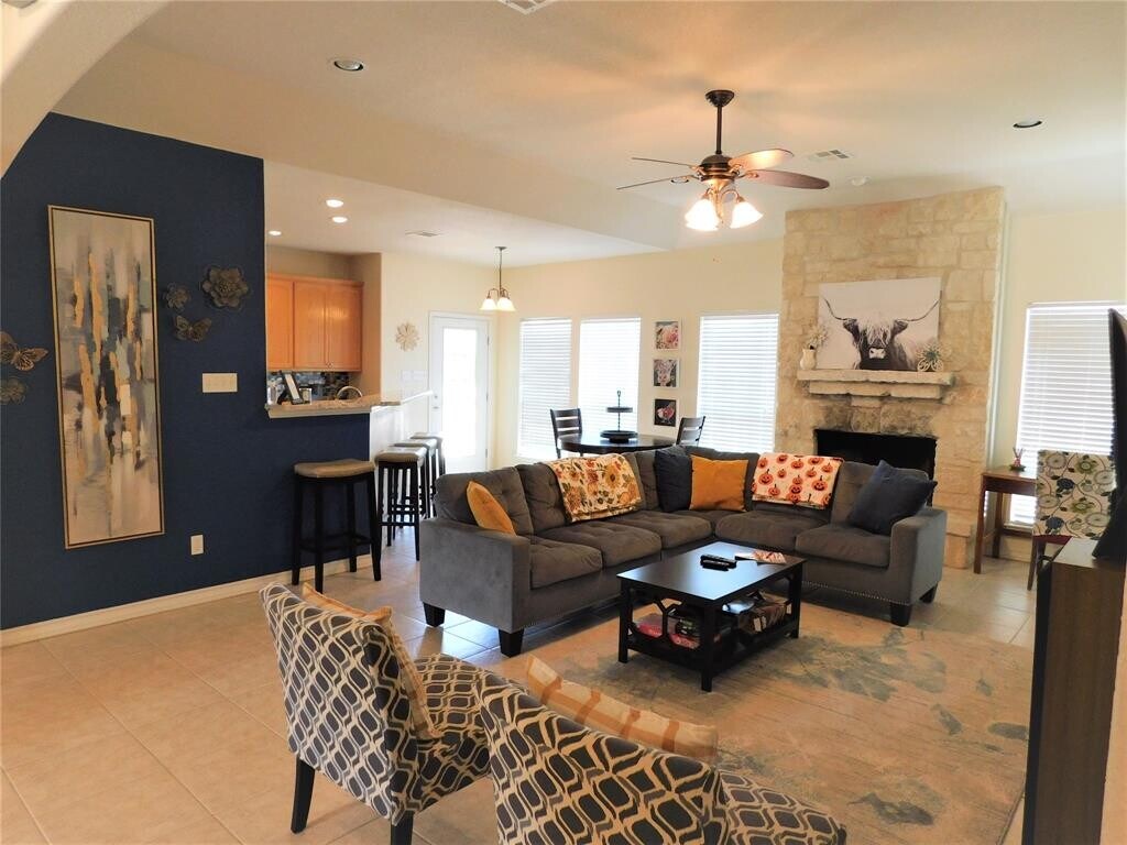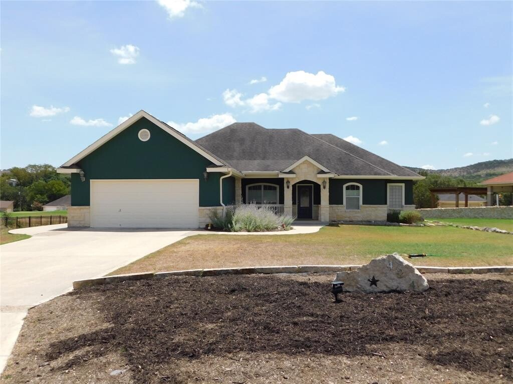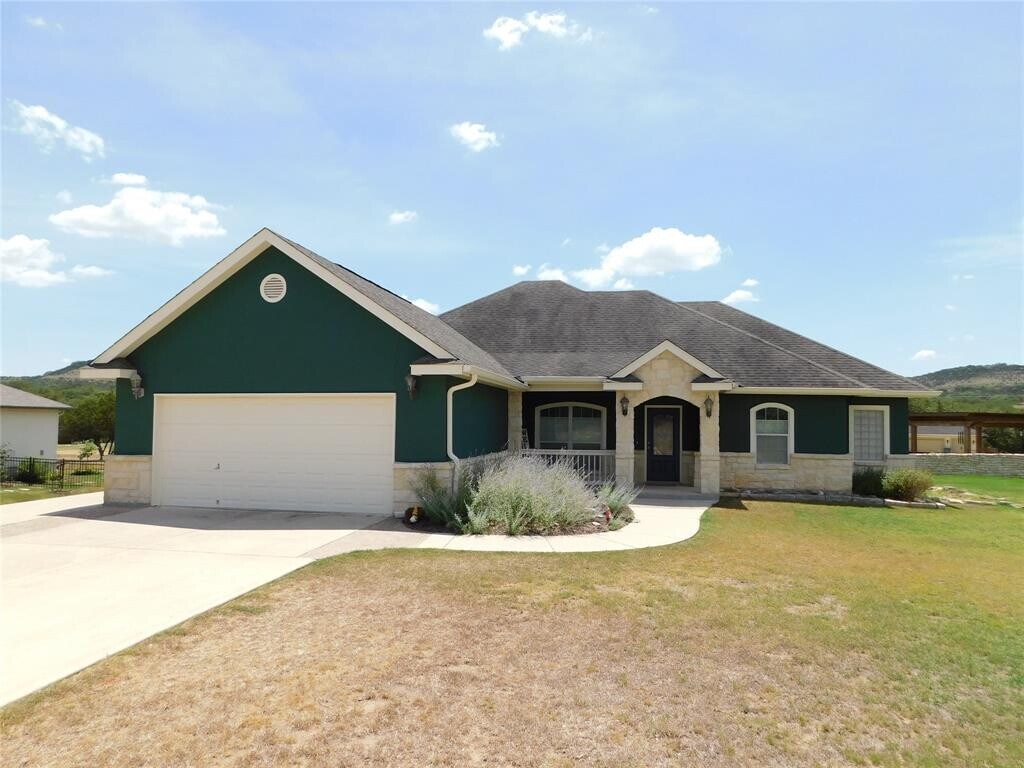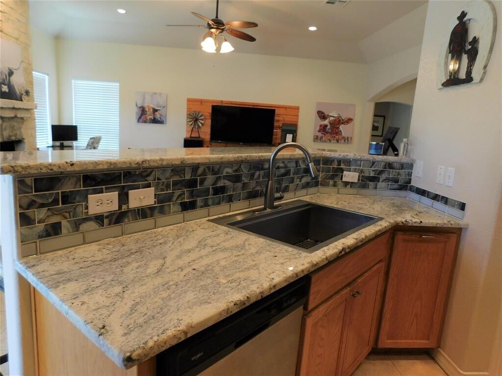 Beautiful one story home in quiet Golf Course community. Stainless Steel appliances including refrigerator. Spectacular, upgraded kitchen with granite counter and stylish backsplash and custom cabinets. Open floor plan, white stone fireplace in the living room, oversized Primary bedroom with tray ceiling and gorgeous windows overlooking the golf course and the hill country. Primary bath with soaking tub and huge walk in custom closet. Enjoy the hill country views from the covered back porch while you watch the golfers play.