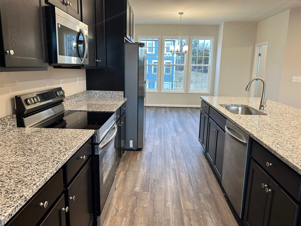 Brand new townhome in desirable Evershire Community. Large bedroom and full bath are on the ground level. This home is easy to share w/Four bedrooms and three and 1/2 baths,across from the middle school Kate Collins. Lots of room to spread out. Located at the end of the street surrounded by open space. Has a good size deck at the main living area and a great back yard. MLS ID 672516