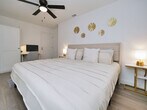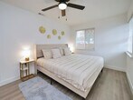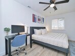 Welcome to this newly remodeled 3-bedroom, 2-bathroom home in Cambrian, San Jose. Spanning 1400 sqft, this pet-friendly residence offers a master bedroom suite with a kitchenette and private entrance, and two free parking spots. Feel at home with no checkout chores required. This modern home is designed for relaxation and comfort, featuring three bedrooms with king-size beds and blackout curtains for restful sleep. The fully equipped kitchen boasts new appliances, and the cozy living area includes a smart 65-inch TV. Enjoy hours of fun with board games and a multi-game foosball table. Baby essentials are available upon request, and the home gym includes an exercise bike, yoga mat, free weights, and an exercise bench. The property includes two off-street parking spots in the driveway. The fully fenced private backyard is perfect for pets and outdoor dining, complete with a BBQ grill. Situated in one of the most premium neighborhoods in San Jose, this home is just 3 minutes from a dog-friendly park, restaurants, Starbucks, and grocery stores. It's 5 minutes to Good Samaritan Hospital, Downtown Los Gatos, Willow Glen, and Vasona Park, and 15 minutes to SJ Airport. Convenient access to major highways in Silicon Valley and proximity to major tech companies like Apple and Netflix make this location ideal. This is one unit of a duplex with a private entrance, private backyard, and complete privacy, resembling a single-family home. A keypad lock provides secure access upon check-in. No parties or smoking inside the house are allowed, with a $500 fee strictly enforced for any rule violations. The garage is not a livable area and may be accessed by cleaners and staff. It is equipped with a security camera for safety. Exercise equipment is available in the garage, but the owners are not responsible for any accidents or injuries on the premises. The home office set-up features a standing desk, a 27-inch monitor, and high-speed broadband Wi-Fi, ensuring a productive work-from-home experience. [SI]