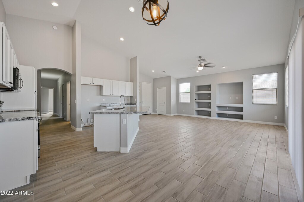 Great family home away from the city lights but close enough to go to work! 4 bedroom on a single level. Built in media niches,walk in closet in master bedroom,mirrored closets in 3 bedrooms,stainless appliances,beautiful white cabinets,and is on a corner lot!! Spacious kitchen and family room is great for family get togethers and entertaining. Pet rent $50/month. Tour Today!