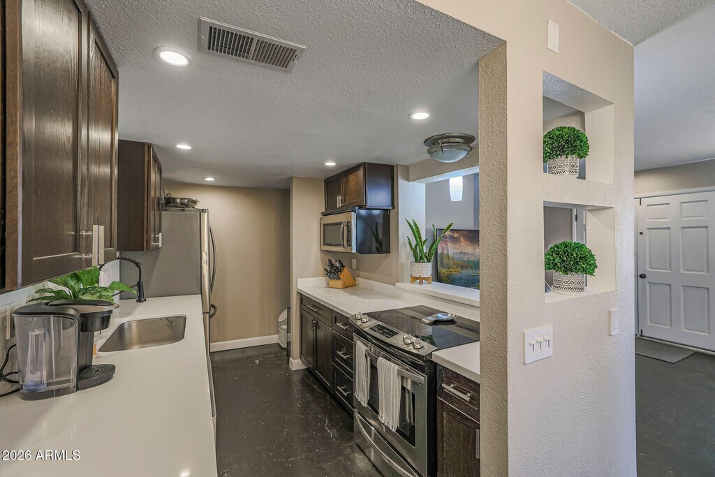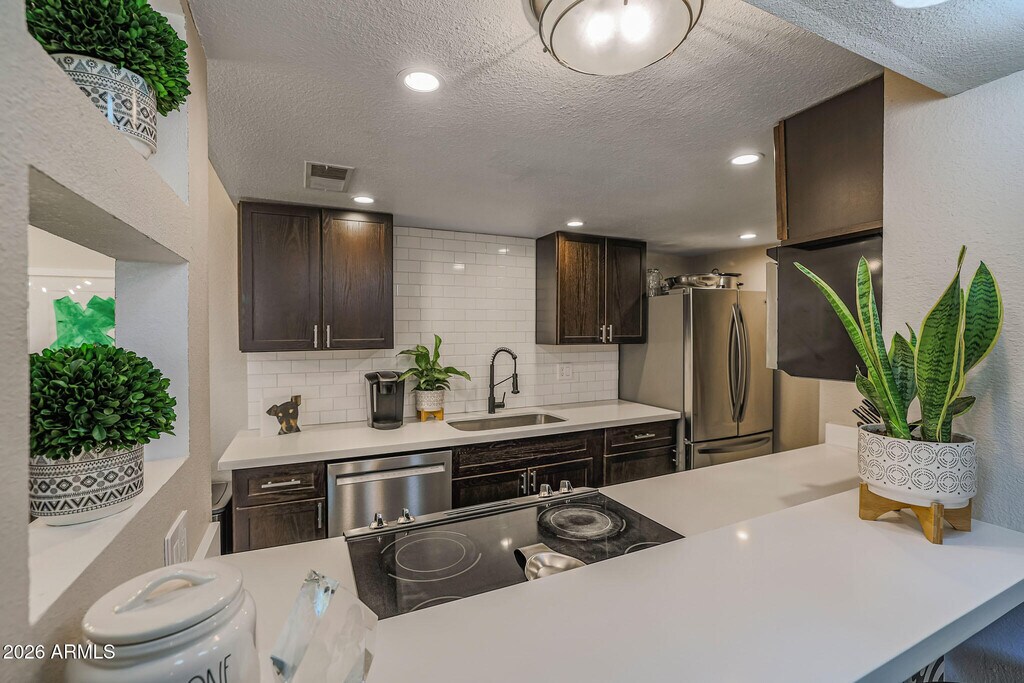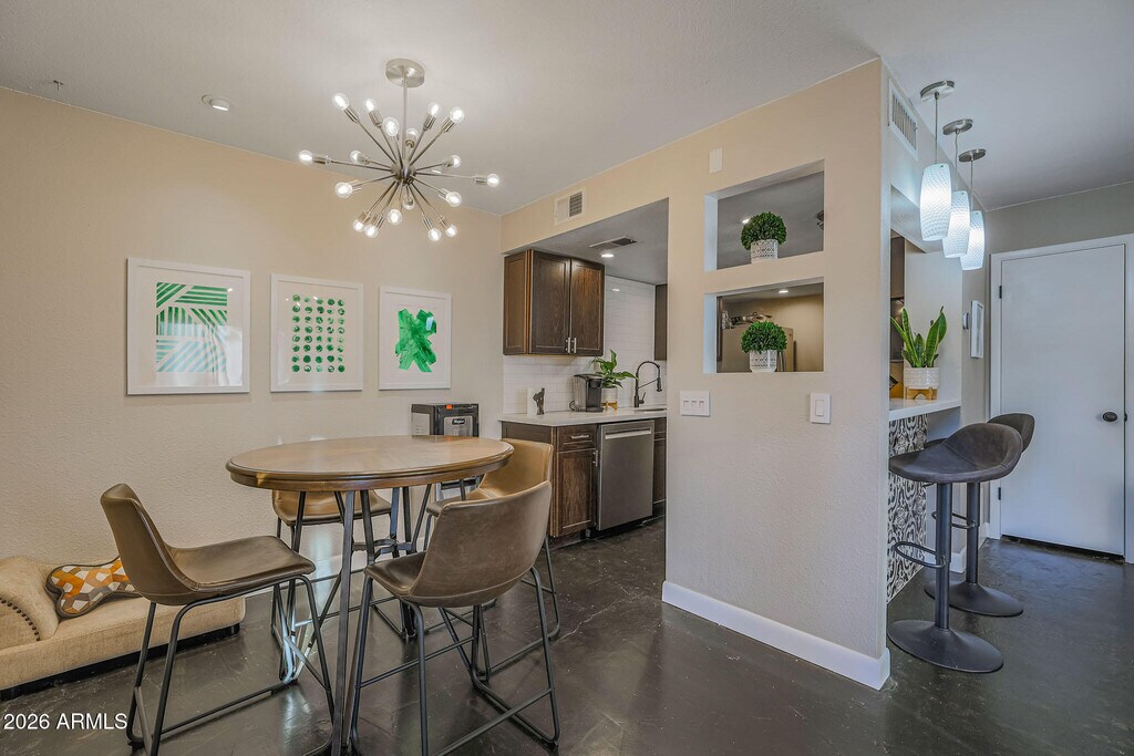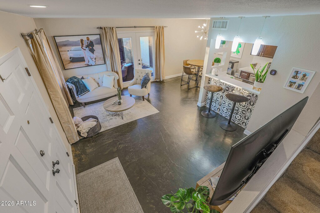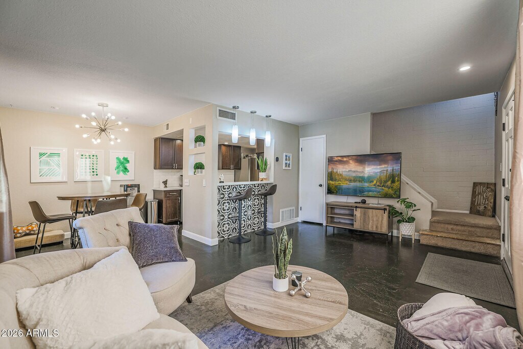 Welcome to your new home in the highly desirable Old Town Scottsdale area! This beautifully updated 2-bedroom townhome offers the perfect blend of style,comfort,and convenience. The main level features easy-maintenance stained concrete floors,a chic subway tile backsplash,a trendy tiled breakfast bar,stainless steel appliances,and updated lighting. Upstairs,the oversized primary suite provides plenty of space to unwind. Additional features include an Ecobee WiFi thermostat,Ring doorbell,and fresh,neutral carpet upstairs. Step out your front French doors and enjoy Indian School Park right across the waycomplete with horseshoe pits,cornhole,shuffleboard,basketball courts,a tennis center,volleyball courts,and a sprawling green space. All of this just minutes from Scottsdale's best dining,shopping,and entertainment. Homes like this rarely come up for rent in this location! Tenant and tenant's agent to verify all facts and figures in the MLS.