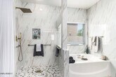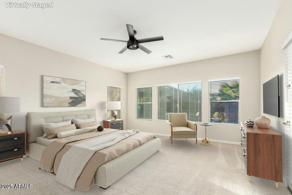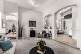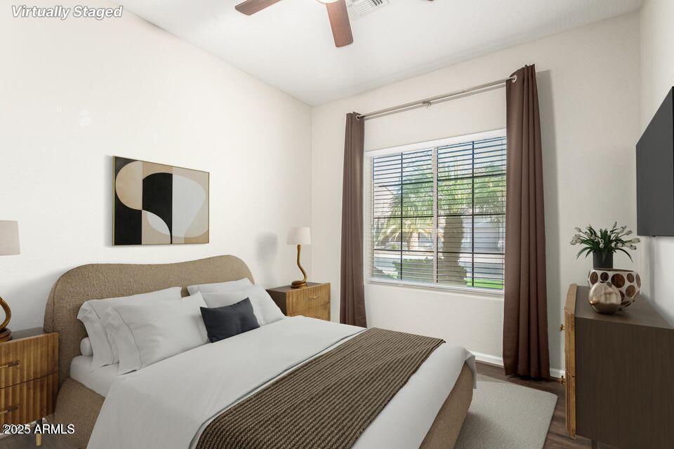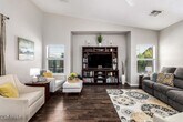 Welcome to this beautifully remodeled and updated single-level home located in a highly sought-after neighborhood known for its serene atmosphere and golf course living. Nestled on an oversized lot,this luxurious home offers 5 bedrooms,2.5 bathrooms,and a rare 4-car garage,including a convenient pull-in bay. This home is set up for a single couple or two couples living with each set having half the house to themselves. The Master and study/bedroom on the left after you enter and 3 full bedrooms and a full bathroom on the right. This winter home is perfect for snowbirds wanting to live in luxury... The home is perfectly positioned on a desirable street that runs parallel to the 18th fairway,just steps away from the course,offering a unique blend of privacy and proximity to recreational luxury. This home has an inviting entryway. Upon entry,the dramatic high ceilings and pillars draw you to the elegant great room,which is perfect for relaxation or entertaining. The interior is fully furnished and move in ready. All new dishes and appliances,TVs,outdoor furniture next to an amazing heated salt pool. Large ceramic tile flooring runs through the main area of the home,with new luxury vinyl plank flooring in the 4 guest bedrooms. The large primary suite and the expansive great room feature new plush carpet. The heart of the home features a spacious open-concept family room,dining and kitchen area,ideal for entertaining or everyday living all furnished and ready from the minute you move in. All bathrooms have been updated with new toilets,custom walk-in showers,showcasing stunning quartz countertops,modern sinks,lighting,hardware,and updated finishes. The grand primary suite,has a door to access the patio,offers a private retreat with a beautifully remodeled en suite including a soaking tub and oversized walk-in closet. Step outside onto your large covered patio & into your personal backyard oasis. The resort-style backyard is landscaped with desert and tropical foliage including palms,and citrus trees creating a lush escape. The highlight of the backyard is the heated saltwater pool,which has been upgraded to gas heating,allowing you to enjoy it comfortably year-round. This home delivers it all! Located just minutes from shopping,restaurants,parks,and not far from South Phoenix. This is more than a home it's a lifestyle opportunity. Don't miss your opportunity to own this updated,spacious,and well-maintained home.