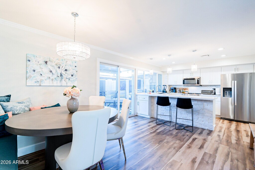 Welcome to your fully furnished,premium,purpose-designed vacation condo situated in the center of everything posh & practical in Oldtown Scottsdale. The home boasts 1,656 square feet of luxury living space featuring 3 generously sized bedrooms,2 ½ pristine bathrooms,ultra-cozy living room,bright white kitchen & dinning,laundry room,lavish covered patio,and 2-car covered parking. Each bedroom is upstairs and has a 65-inch 4K Smart TV,with the primary featuring a king-size bed,walk-in closet,electric fireplace,and sheik bathroom with walk-in rain shower and plenty of space to get glammed up. Bedroom #2 features a California king bed while two queen beds are in #3. Relax downstairs with a 75-inch TV,4- player standing arcade,and 5' round pedestal table with built-in banquet.