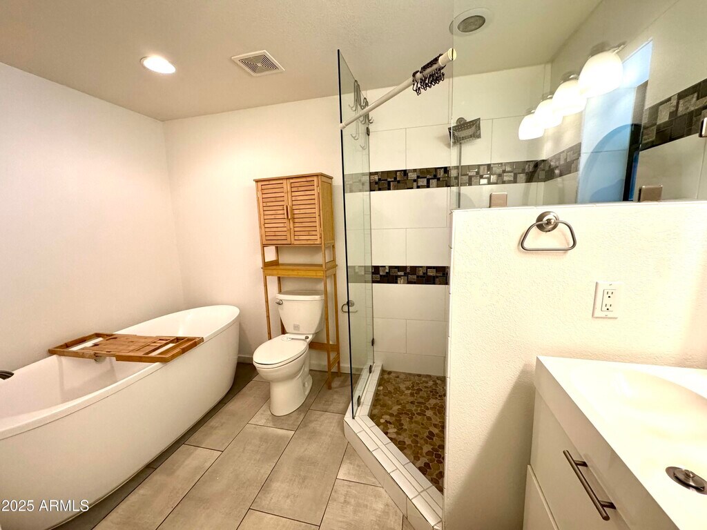 Outstanding Mid-Century Remodel with Modern Elegance! This beautifully updated home offers incredible curb appeal and architectural charm at every turn. Inside,you'll find soaring ceilings,wood-look tile flooring throughout,upgraded lighting,& a spacious open floor plan designed for modern living.The chef's kitchen impresses with a center island,breakfast bar,stainless steel appliances,unique countertops,and abundant white cabinetry with stylish hardwareperfect for both entertaining and everyday meals. Expansive Arcadia doors lead to the patio,creating seamless indoor-outdoor living.The primary suite features courtyard access,walk-in closet,& a luxurious bath with designer tile. Step outside to a lush backyard oasis with fruit trees and soaring blue skies ideal for relaxing!