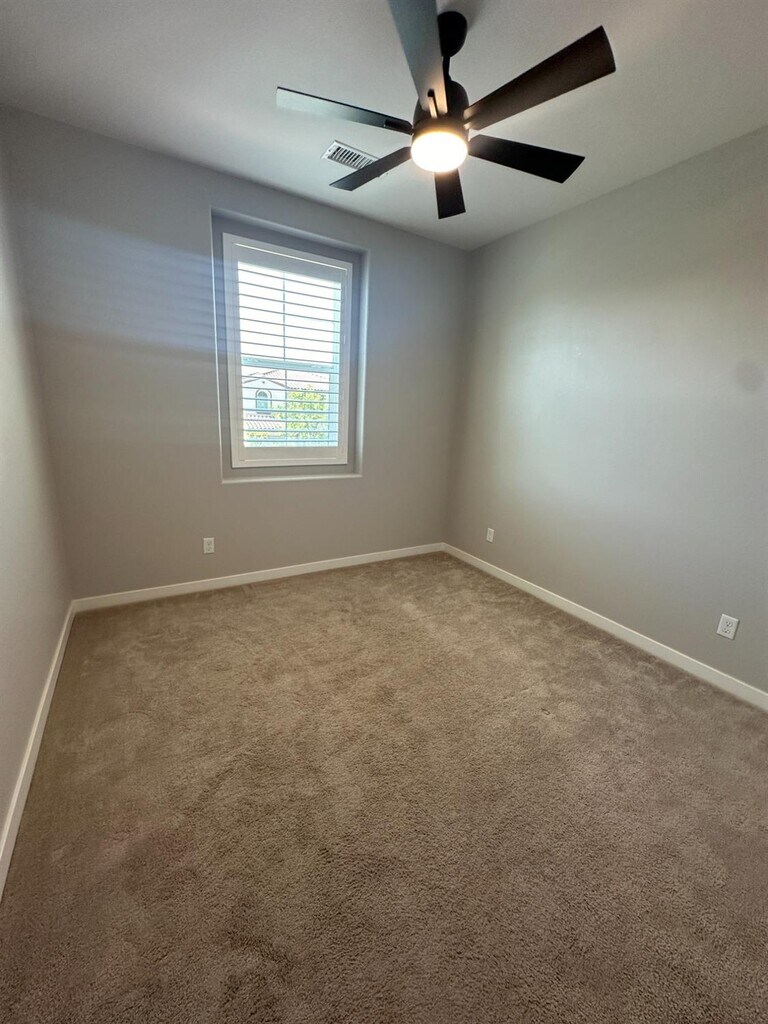 This is your chance to live in the highly sought after Tesoro Viejo neighborhood in Madera! Enjoy this almost brand-new home with perks such as synthetic lawn in the back and drought friendly landscaping in the front. The kitchen is well-equipped with GE appliances and an oversized island with stunning black countertops. All three bedrooms and two bathrooms are upstairs, each bedroom including ceiling fans and timed lighting. The laundry room is conveniently located upstairs as well. Solar is included (resident will be responsible for true-up bill), making the choice to call this place home a no brainer! Residents will have access to community pool, lodge and community coffee shop. Enjoy the local farmer's market in the community each Saturday! Renter's insurance is required.