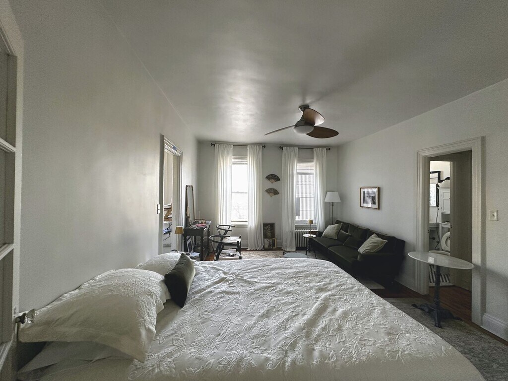 This condominium junior 1br rental unit has 5 windows to allow for lots of natural light and boasts three huge closets (including a cedar walk in). The eat-in kitchen is equipped with a microwave and dishwasher. The unit comes with access to an on-site storage locker. The building has laundry on each floor and a live-in super. The unit is on the 3rd floor and is a walk-up. The location offers easy access to transportation, food, and shopping: F/G at Bartel Pritchard Square B67/69 busses on 7th Avenue Citibike stations on 7th Ave and Prospect Park West. Prospect Park is 1.5 blocks away Many shops and restaurants nearby. Sorry, no dogs allowed per condo rules. First month's rent, one month security due on lease signing. Condo approve process required Condo requires a move in and out deposits. Reach out to make this sweet place your new Brooklyn home.