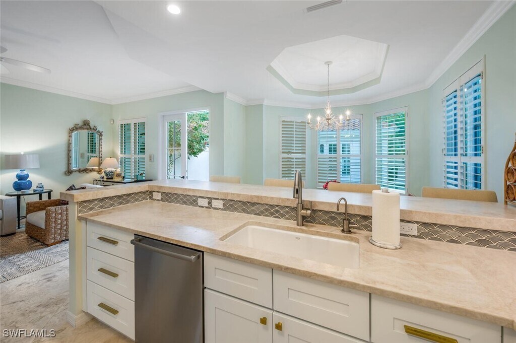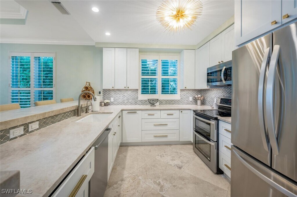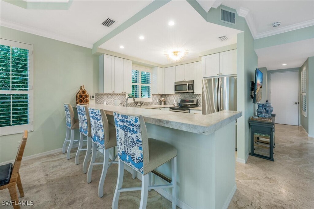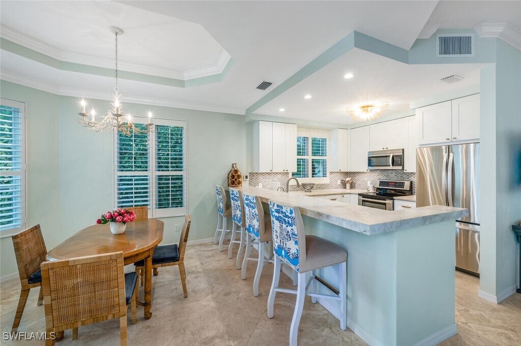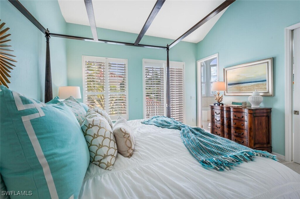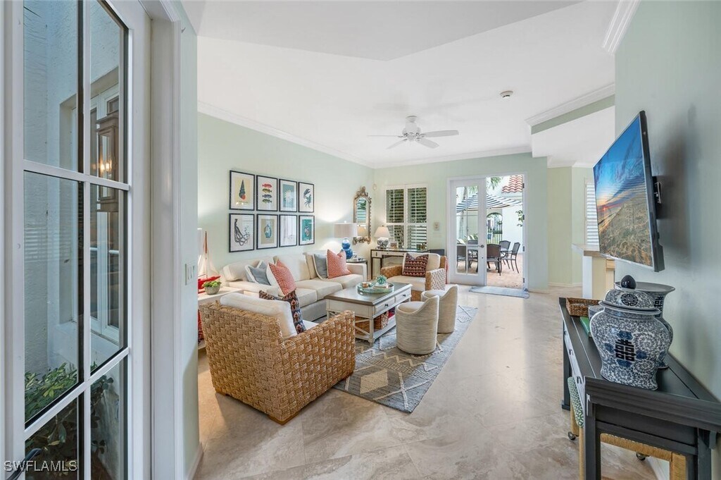 Ideally situated just blocks from iconic Fifth Avenue South,this 4 bedroom,3 bath end-unit villa offers the ultimate Naples winter retreat. Just inside your private gate is a secluded tropical courtyard where a sparkling pool,relaxing spa,and ample seating create the perfect space for entertaining or unwinding in style. The chef’s kitchen is thoughtfully appointed with Quartzite countertops,stainless steel appliances,a striking backsplash,and a breakfast bar with counter-height seating. Just beyond,the light-filled dining area invites gathering and conversation. The living room exudes cottage-chic charm with plantation shutters,French doors,and elegant coastal décor. Upstairs,the stunning primary suite features soaring ceilings,a four-poster king bed,and a private balcony overlooking the pool,your own serene sanctuary. The spa-inspired primary bath includes dual sinks,a walk-in shower,and a luxurious soaking tub. Guests will feel right at home with beautifully furnished accommodations — one with a queen bed,another with a twin-over-full bunk,and a fourth poolside cabana featuring twin bunks and an adjoining full bath. With a two-car garage discreetly accessed from the alley and every detail designed for comfort and sophistication,this residence embodies the essence of Old Naples living — elegant,relaxed,and effortlessly exceptional. Live Exceptionally in Old Naples!