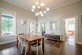Welcome to your perfect family getaway in Salt Lake City! This charming vintage home, built in 1883 by Utah's first pioneers, offers a cozy and convenient stay just minutes from downtown. With its large enclosed backyard, spacious rooms, and thoughtful amenities, this home is ideal for families traveling with kids or anyone looking for a peaceful retreat close to the city’s action. The master bedroom features a queen bed with ample storage and two north-facing windows with blackout shades. The children's bedroom includes a trundle bed with two twin-sized mattresses and a crib, along with a mini-split system for personalized temperature control. The fully stocked kitchen offers a wide selection of spices, utensils, pots, and pans, with plenty of counter space for cooking meals or baking holiday treats. A washer and drying racks are conveniently located just off the kitchen. The bathroom includes a tub/shower combination, vanity, and toilet. The grand dining room boasts 13-foot ceilings and seating for six, while the living room features an original hand-carved fireplace with an electronic insert and a 45-inch TV for entertainment. A dedicated workstation is available for remote work or quiet reading. The property offers a private driveway with covered parking. Kid-friendly amenities include a backyard trampoline and sandpit. Perfectly situated for ski season, extended stays, or exploring downtown Salt Lake City, this home offers easy access to popular destinations. The University of Utah is just 7 minutes away, Vivint Arena is 12 minutes away, and downtown SLC is a mere 10-minute drive. For ski enthusiasts, Snowbird Resort is 29 minutes away, Alta Ski Area is 31 minutes away, Solitude Ski Resort is 33 minutes away, and Brighton Resort is 36 minutes away. All distances are approximate and provided by the most popular navigation website. No smoking or vaping is allowed on the premises, with a $200 per day fee for violations. Pets are welcome at the cost of $10 per pet per day, and guests must pick up after their animals. Unauthorized pets incur a $250 fee. Quiet hours begin at 10:00 PM and continue until sunrise. Early check-in and late check-out requests are subject to availability and fees. Outdoor security cameras may be in use, but no cameras are located in or pointing to indoor spaces. Includes a dedicated workstation for remote work or quiet reading.