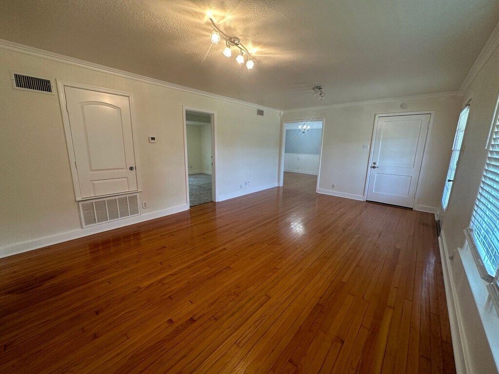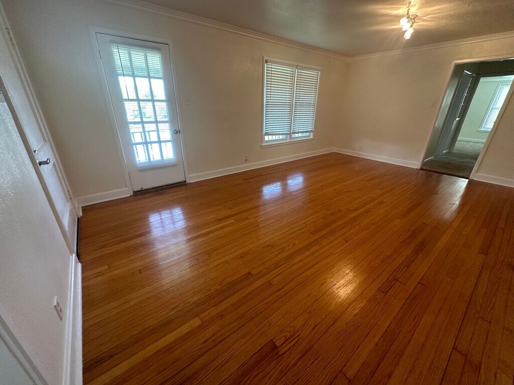 Welcome to this charming 3-bedroom, 1-bathroom duplex! This upstairs unit offers a blend of comfort and convenience. The home features central AC and heat, ensuring a comfortable environment all year round. The spacious bedrooms are carpeted, providing a cozy atmosphere, while the living and dining areas boast beautiful hardwood floors. The property also includes a private balcony, perfect for enjoying the Texas weather. The large backyard with a deck offers ample space for outdoor activities. The central location of this home is a major plus, with easy access to schools and downtown. Additionally, parking will never be an issue with plenty of space available.