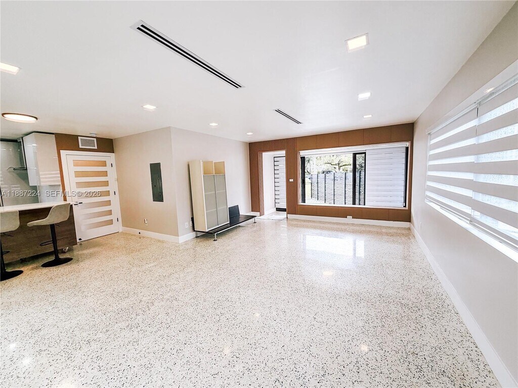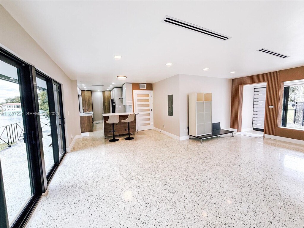 Charming lakefront MIMO-style home on Mirror Lake (spring-fed) with stunning water views. Fully renovated 3BR/2BA offering approx. 1,665 SF adjusted area (per public records), including an enclosed, air-conditioned porch, plus a large covered patio facing the water. Classic 1950s MIMO character—original terrazzo floors—paired with major upgrades: new electrical & major plumbing, new A/C with new ducts/vents, impact windows/doors (primary pending), new driveway, updated kitchen and baths, dedicated laundry, designer lighting/shades, and a brand-new fenced yard. Bright open living/dining with lake views—launch a kayak or paddleboard from your backyard. Convenient to Miami Shores CC, parks, cafés and shops. Annual lease. Pets OK with fee. Tenant pays utilities, lawn care & pest control. Showings by appointment with notice. Equal Housing Opportunity. Requirements: ID, proof of funds/income, rental application, credit/background, renter’s insurance. Quick approval (24–48 hrs). Available now. MLS # A11887224