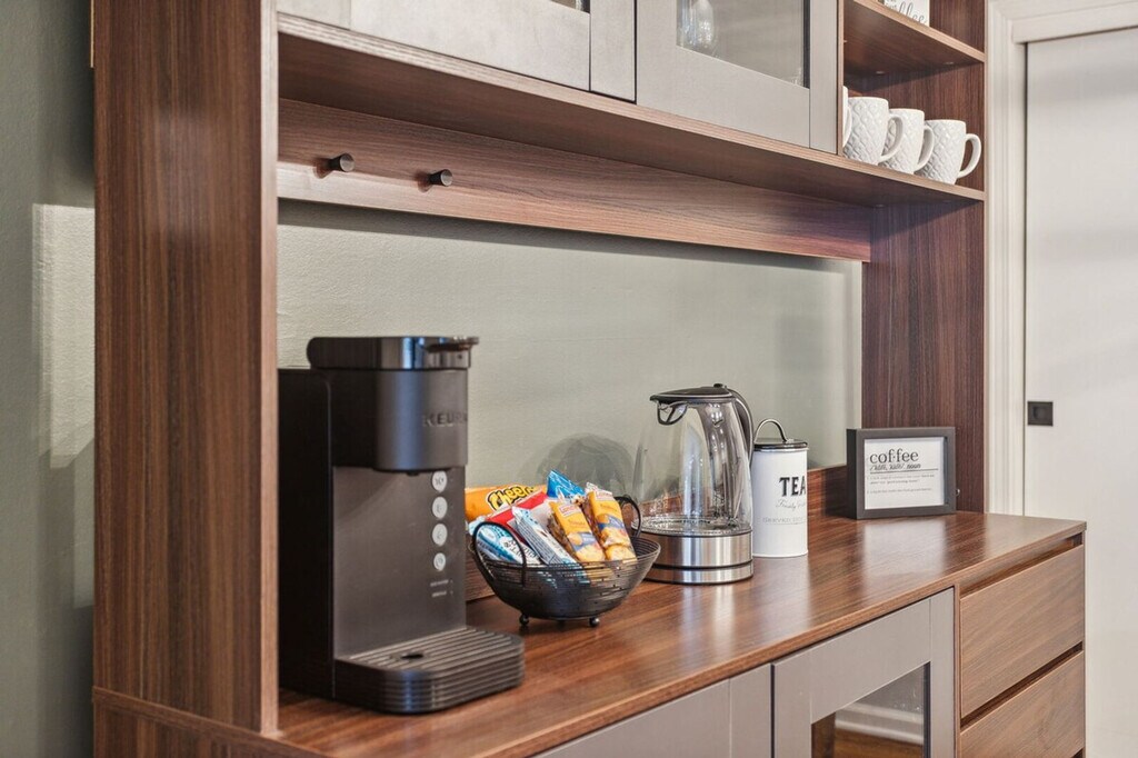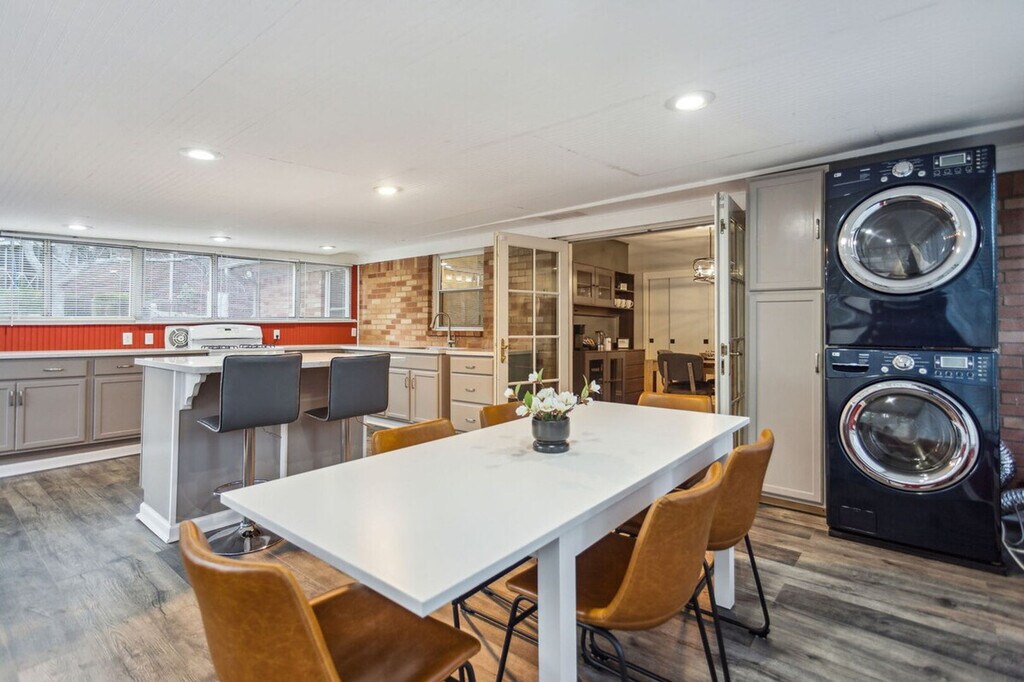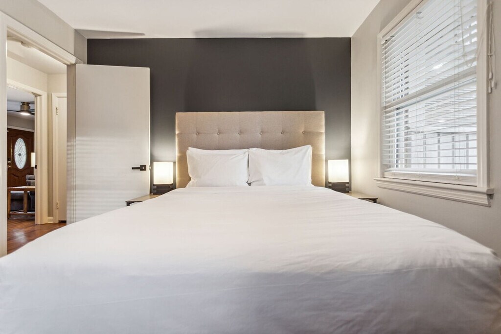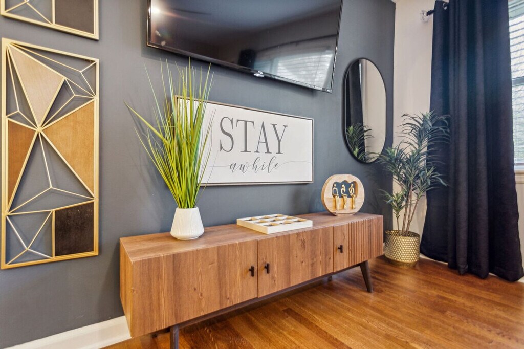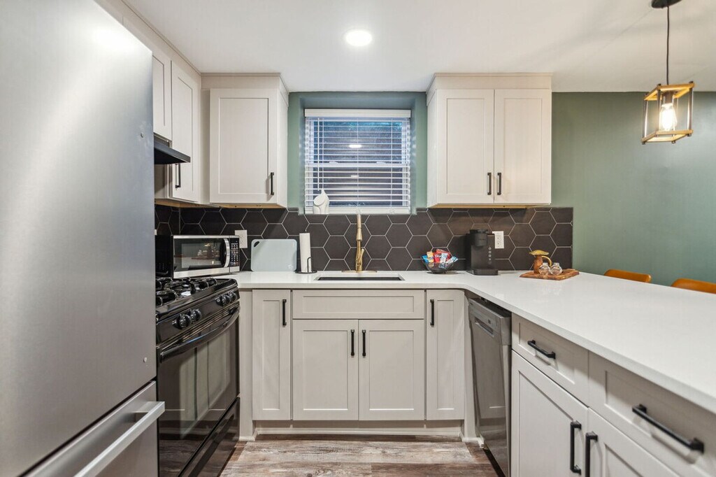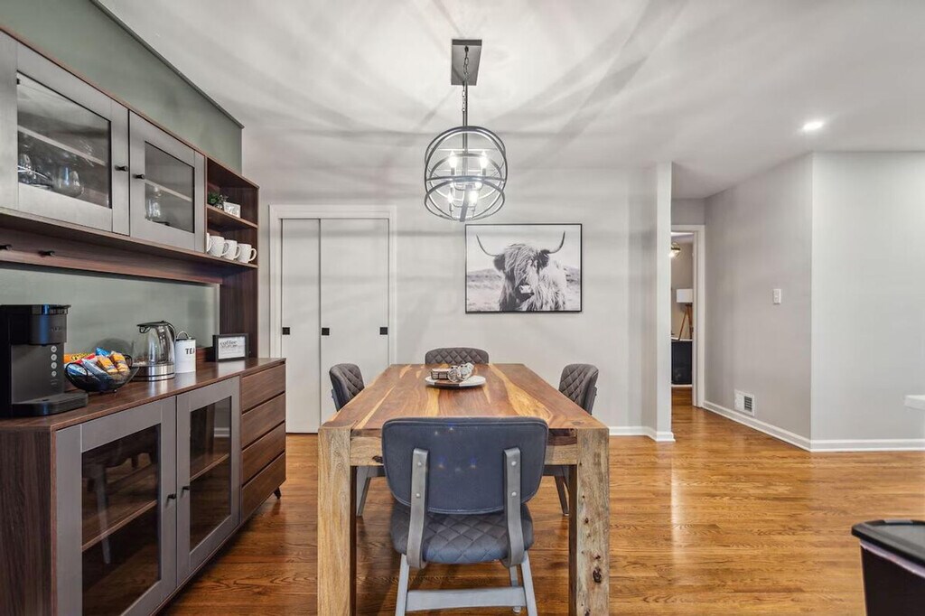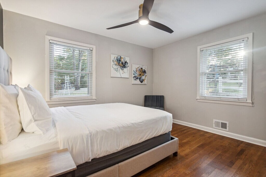 Ideal for large groups, extended families, or relocations, feel at home in this 4-bedroom, 3.5-bathroom home in Smyrna, GA. This home offers an exceptional set-up with three fully equipped kitchens, providing privacy, flexibility, and comfort. The ground floor features a cozy living room with a Smart TV, a modern kitchen with stainless steel appliances and dining for four, and a queen master suite with a private bathroom (shower). The second floor features two additional fully equipped kitchens, a spacious second living room with a Smart TV, and three full bathrooms. Wi-Fi, Smart TVs, ceiling fans, and hotel-quality linens are included in every room. A welcome tray with snacks and Keurig K-Cups is also included. This home is pet-friendly with applicable fees. For stays of 29+ nights, the fee is $10 per pet, per night. For stays of 7-28 nights, the fee is $15 per pet, per night. For stays of 1-6 nights, the fee is $25 per pet, per night. Located just minutes from Atlanta’s top attractions, with the added peace of suburban living. Nearby attractions include Market Village for shopping, dining and local events, the Silver Comet Trail for biking, walking, and outdoor fun, Truist Park for Atlanta Braves games and concerts, Smyrna favorites like Atkins Park Tavern & Muss & Turner’s, and Milk Creek Lake & Cindy’s Lake for peaceful natural escapes. There is plenty of space to relax and unwind outdoors, and driveway and street parking are available. This is a non-smoking property, and events are not permitted. Pets are considered and require approval before check-in. The pet fee is an occupancy fee, not damage protection. For stays of 40–60 nights, a mid-stay clean is required (linens & toiletries replenished; personal belongings not included). Scheduling is flexible, and guest presence isn’t necessary. For stays over 60 nights, a Deep Clean replaces the standard checkout clean. All utilities, Wi-Fi, lawn care, and pest control are included. A full-size washer and dryer are available for guest use. This is a family-friendly and group-friendly set-up. [SI]