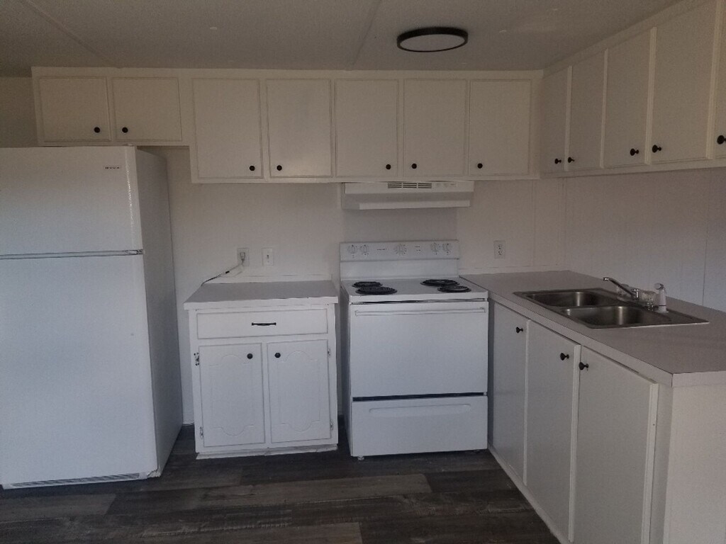 2 bedroom 2 bathroom single wide mobile home. The kitchen includes the electric stove and refrigerator. There is also a dining area and spacious living room. The laundry area has appliance hook ups. There is central air and an electric heat pump. NO PETS