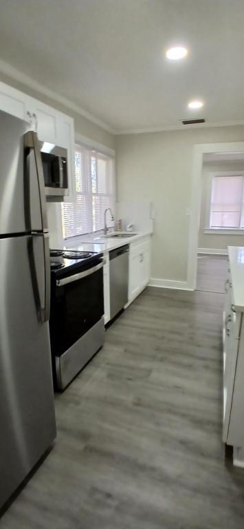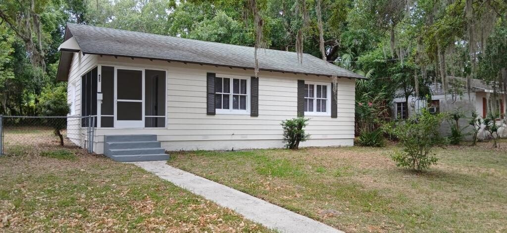 LEESBURG, FL home -Ready for Occupancy! **** 2-Bedroom/1- Bath corner house BUILT IN 1948! with a screened porch. Recently renovated house in Leesburg. LVP plank throughout. Washer/dryer hookup in laundry/mud room. Kitchen has new cabinets, quartz countertops, abundant space for cooking! Ceiling fans in bedrooms and LR. Fridge/range/Stainless Steel range hood and Dishwasher. Fenced in back yard with shed. Rental rate is $1495.00 per month with an $1600.00 security (if qualified)