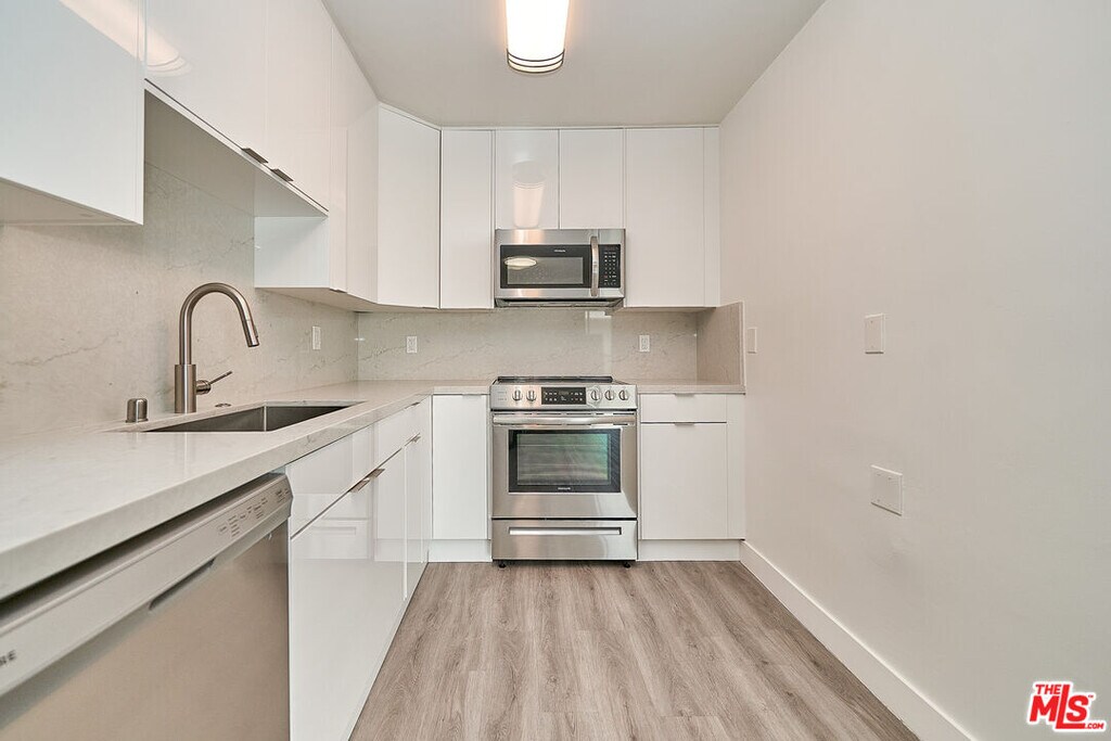 Welcome to 425 S. Willaman! Neighbors to the in famous Four Seasons Residences and perched just on the edge of both Beverly Hills and West Hollywood, this newly reimagined development awaits you. Boutique in size but mighty in in luxurious amenities, this community offers a stunning newly renovated lobby, large sparlking pool with outdoor lounge areas, secure package lockers and gated under ground parking for your pleasure. The available unit is the 1b/1ba floorpan you have been waiting for! Includes all desired must haves for a cozy and inviting lifestyle. The beautiful upgrades include newly installed hardwood floors, fully new kitchen with quartz stone counter tops, new cabinetry, top of the line stainless steal appliances, and new light fixtures! The bathroom has also been fully transform with new vanity, counter tops, fully tiled glass enclosed shower and new flooring. The bedroom is full of light and features great closet space! The final touch to any perfect rental, private outdoor space.. yes you have your own private balcony! Available now! MLS# 26643671
