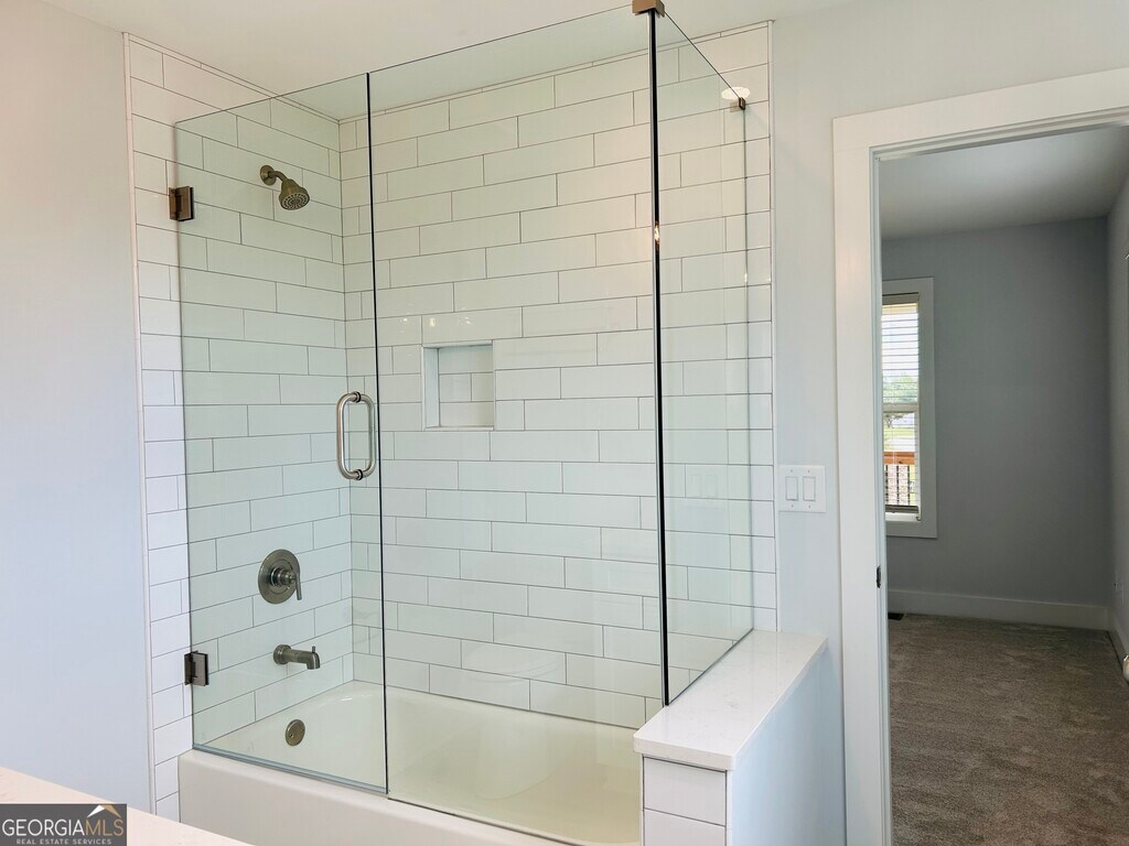 This completely rebuilt 4 bedroom, 2.5 bath home with a large bonus room leaves nothing to be desired! This home is not only energy efficient but also a smart home; complete with upgraded ethernet, security system with cameras (all included in rent). As you enter, you are greeted with the huge vaulted ceilings with LED lighting, upgraded custom light fixtures throughout, beautiful LVP flooring, custom mantle with working fireplace and an already installed 4 way movement TV mount. The kitchen features quartz countertops, undercabinet lighting, a SS deep tub kitchen sink, a large center island, beautiful tile back splash and SS appliances. The oversized primary suite includes tray ceilings, walk in closet and tons of natural lights. The primary bathroom has dual sink custom vanity, dual head shower with custom tile and a frameless glass surround. The secondary bedrooms on the main floor have a jack and jill bathroom also with custom tile work and frameless glass surround. The upstairs bedroom has it's own mini split HVAC unit! Enjoy your morning coffee on one of the 3 covered porches looking at the amazing views. The unfinished basement provides tons of storage along with the laundry area. Minutes to Downtown Newnan, Newnan High School, shopping and restaurants! This home is truly remarkable and will not last long!