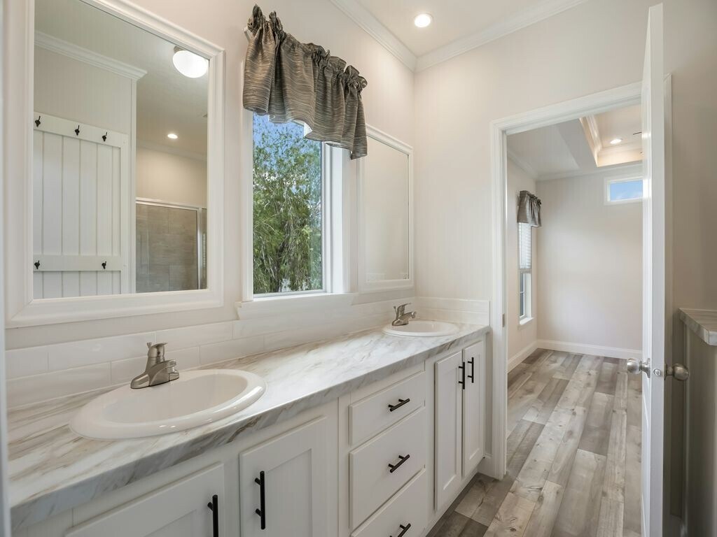 WELCOME TO HERITAGE PLANTATION A 55+ AGE-QUALIFIED ACTIVE AND VIBRANT COMMUNITY, where you can find yourself in your dream home. Ready for you to start living your best beach life! The Spring Hill has so much style! This open plan boasts beamed ceilings, crown moldings, woodgrain luxury vinyl flooring throughout, island kitchen with two-toned cabinets, built-in electric fireplace, shiplap accents, and much more! Enjoy the view from the huge kitchen window over your apron sink. Stainless steel appliances. Glass and stainless vent hood. Recessed and pendant lighting. Your dining room has sliding glass access to the front porch. Transom windows bring in light without sacrificing privacy. The main bedroom has a lovely tray ceiling, walk-in closet, ceramic tile and glass shower and dual sink vanity. You'll appreciate the enormous laundry room with back door to the storage shed and extended carport. Find your slice of paradise at Heritage Plantation. Conveniently situated near shopping, dining, major highway I-95 you'll have everything you need just minutes away. Whether you're looking for relaxation or recreation, this community has it all. Call today to schedule a tour!