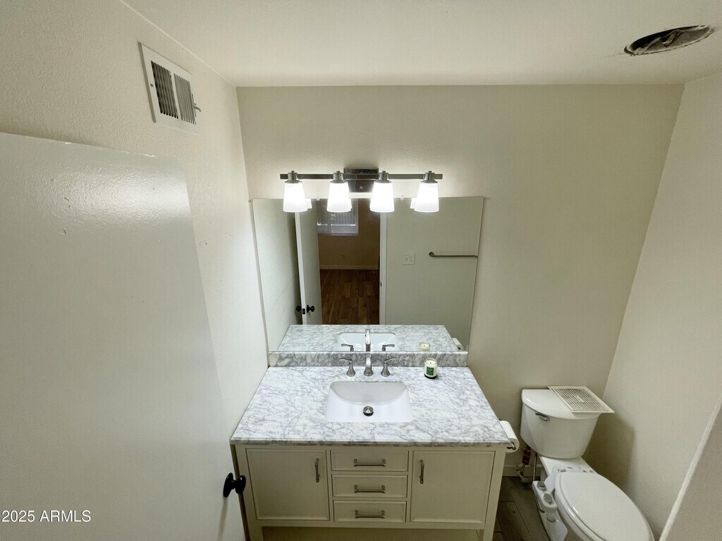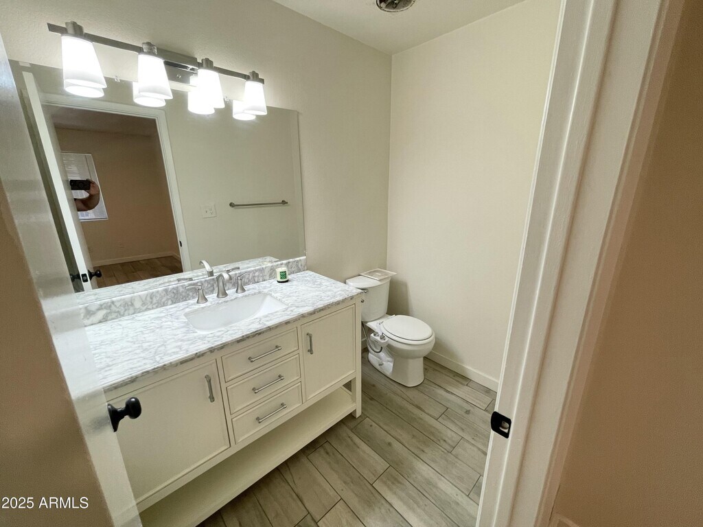 Charming 3 bed/1.5 bath end unit in the Biltmore corridor. Wood look vinyl t/o. Kitchen features granite counters,stainless appliances,and subway tiled backsplash. 2 of the bedrooms have large sliders to backyard/patio. Private backyard is all turf. Private laundry. Updated vanities at baths. The half bath is located in one of the bedrooms. N/S exposure. Convenient to Biltmore shopping,dining,downtown,and freeways.