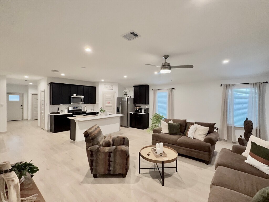 Cul-de-Sac Oversized Lot! Stunning modern stucco and brick elevation with great curb appeal! Step inside to a grand entry with soaring ceilings and large format tile flooring. The open concept family room offers a wall of windows overlooking the covered patio,perfect for relaxing or entertaining. The space flows into the gourmet kitchen and casual dining area,featuring tall shaker cabinets,stylish backsplash,stainless steel appliances,an oversized eat-in island,Silestone quartz countertops,an undermount sink,and a walk-in pantry. The private primary suite boasts high ceilings,plush carpet,a luxurious bath with dual sinks,cultured marble counters,a seamless glass shower,and a huge walk-in closet. Three spacious guest bedrooms share a full bath with cultured marble counters. Energy-efficient with HERS rating,tankless water heater,and Smart Home System controlling SkyBell,locks,lighting,thermostat,and security,all from your phone! MLS# 59714792