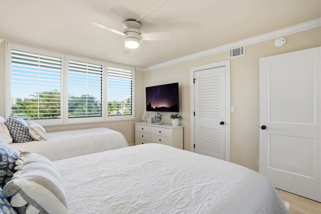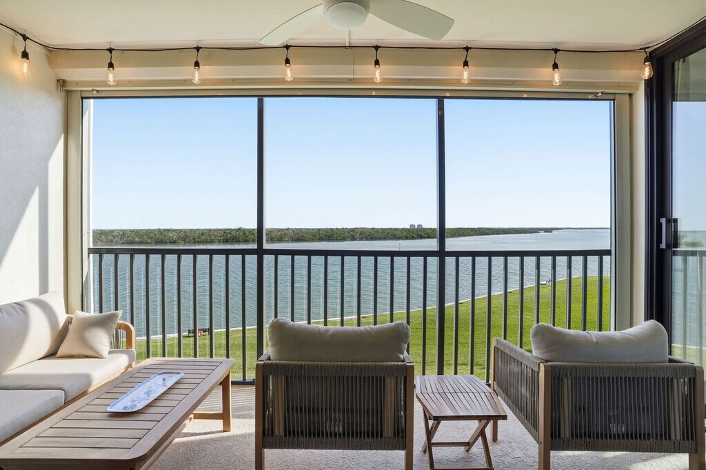 Feel at home in this beautifully updated, luxury condo on the south end of Fort Myers Beach. Located on the third floor with elevator access, this bayside retreat sleeps up to six and features coastal-style interiors, three TVs, and a private balcony overlooking mangrove islands and open water. Spanning over 1000 square feet, the condo comfortably accommodates up to six guests with a well-designed layout. High-end furnishings, coastal finishes, and three flat-screen TVs create a refined yet relaxed atmosphere. The open living area flows seamlessly to a private screened lanai showcasing spectacular bay and mangrove island views. Residents also enjoy access to resort-style amenities, including a private pool, bocce ball courts, shuffleboard, a propane gas grill with tiki hut, a small fitness room, a putting and chipping green, multiple tennis and pickleball courts and private community beach access. Assigned under-building parking is available with additional unassigned parking. Located just across the street from the beach, this condo is a 10-minute walk to the Gulf’s white sand and turquoise waters of Fort Myers Beach. The condo also has a prime location near the new south end Fort Myers Beach bridge, making island access smooth and convenient year-round. Pets are not allowed. Quiet hours are between 10 PM and 8 AM. Please do not rearrange the furniture. Please report any damage or malfunction to the host right away so that the damaged item can be repaired or replaced. This booking and reservation are contingent on the signing of a lease and HOA paperwork and approval. Access to the property cannot be given until HOA approval is received prior to move in along with the second payment. Please allow 30 days for processing. The community has a 30-day minimum number of days per lease. This is a self check-in property and all guests who are fully paid with HOA approval will receive access instructions prior to arrival. There is a 30 days minimum for each lease by association rules. Registration Number: Florida state permit number: #CND2103372 [SI]