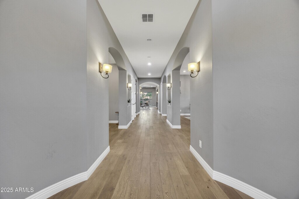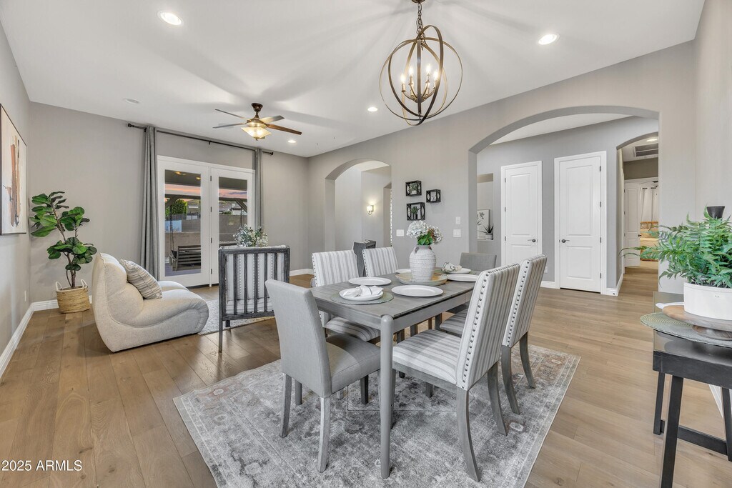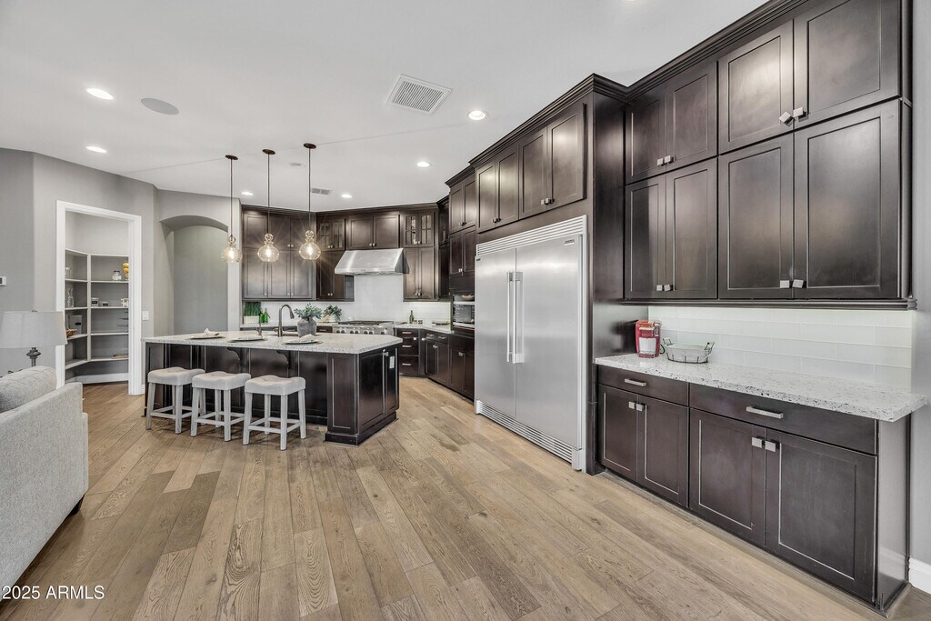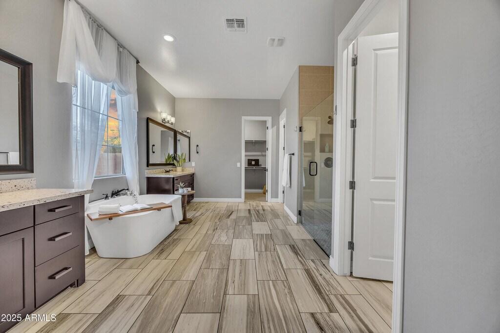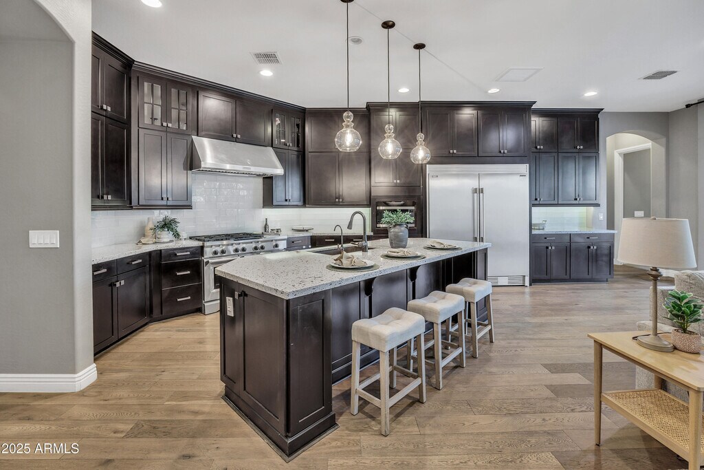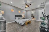 Presenting a CalAtlantic,former model home that stands out as the showcase residence in the gated Legacy Mountain community! This 4 bed+ office/den,4 bath home spanning almost 3,000 sq ft,with real driftwood flooring,offers elevated design and builder upgrades that makes it one of a kind! The gourmet kitchen is crafted with granite countertops,custom cabinetry,high-end appliances,and a large island that flows into the open great room. Pocket-style glass doors create seamless indoor-outdoor living,complemented by a surround sound system throughout the home and patio.Located near Arizona Grand Resort Waterpark,Angel Stadium and South Mountain trails to hike! With top schools,dining,and shopping close by,this home is refined luxury living!