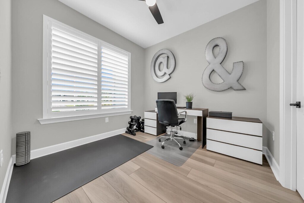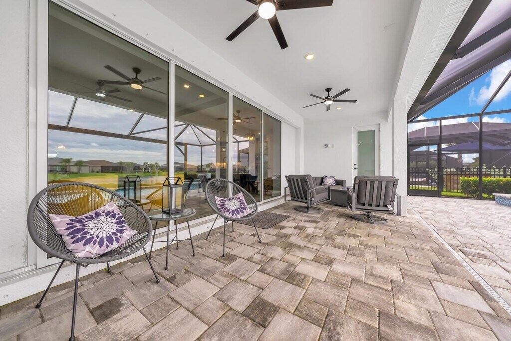 Welcome to this rare single-story Easley floorplan in Northridge, one of Babcock Ranch's most convenient neighborhoods for commuters. With 2,985 sq. ft. under air, 4 bedrooms plus a den, and 4.5 bathrooms, this residence blends expansive living space with elegant design. From the moment you arrive, the home's wide front porch invites you to slow down and enjoy the Florida lifestyle. Framed by upgraded paver walkways and landscaping, this charming outdoor space is perfect for morning coffee, evening cocktails, or simply watching the neighborhood come to life. This home pairs rare functionality nearly 3,000 sq. ft. on one level and a true 4.5 bath layout with thoughtful design inside and out, offering one of the best opportunities to own in all of Babcock Ranch.