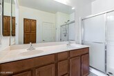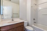 Welcome to Province,Maricopa's premier 55+ active-adult community. This nice 2 bed plus den Camelia model has a cozy & well lit front kitchen,a great breakfast bar for friends to gather around,and comes with all the appliances,including fridge,washer & dryer. NO CARPET!! The master bedroom is split for privacy,and the ensuite has double sinks and a walk-in shower. Relax on your covered patio. Live within walking distance to a 32,000 sq ft clubhouse: Card games,workout room,ceramics,art classes,dance lessons & meetings in the large dance hall. Join the car,motorcycle,or bike clubs. Indoor & outdoor swimming pools,miles of walking paths with catch and release fishing lakes,Bocci ball,Pickle ball,tennis,putting green,everything to keep you fit and active!