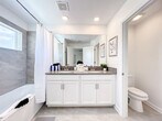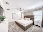 Experience the excitement of the new Epic Universe park this May 22nd with unbeatable comfort just minutes away in this luxurious townhouse at Storey Lake Resort. Featuring a private pool, fully equipped kitchen, and air conditioning, this home offers a seamless self check-in process and is ideally located near Disney and outlets. With four bedrooms, including two master bedrooms with king-size beds, this townhouse is perfect for a family getaway. This charming townhouse offers a private pool (heating available for an extra fee), a fully equipped kitchen, Wi-Fi, and self check-in. Enjoy full complimentary access to all resort amenities, including a water park, gym, spa center, heated swimming pools, lazy river, beach volleyball field, basketball, and a social grill/BBQ area. The living room features a full-size sofa bed and a smart TV, while the dining room comfortably seats eight. Optional paid add-ons include BBQ grill, pool heating, pack and play, high chair, early check-in, and late check-out. Please inquire about availability for these services prior to your stay. Located just 6.7 miles from Disney Springs, 8.8 miles from SeaWorld Parks, and 12 miles from Universal Studios, this townhouse is perfectly situated for exploring the best of Orlando. The Orlando International Airport is 21.1 miles away, and the Orange County Convention Center is 9.5 miles away. Nearby shopping includes The Loop Shopping Center, Orlando International Premium Outlets, and Vineland Premium Outlets. Transportation options include the SunRail Station and rideshare services like Uber and Lyft. Guests must be at least 18 years old to book a reservation. No unregistered guests, smoking, drugs, or pets are allowed inside the home. To access the resort, guests are required to share a guest list to create and share QR codes. Essentials are provided for the first night only, including toiletries and basic kitchen supplies. The property is exclusively for vacation use and filming is not allowed without prior authorization. A safety protocol has been deployed to ensure the well-being of guests and staff, including keyless entry and professional cleaning services. Guests are expected to follow the safety protocol and all posted instructions during their stay.