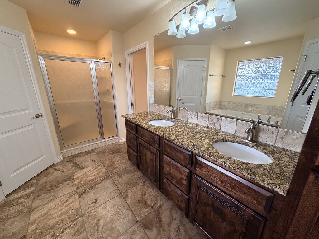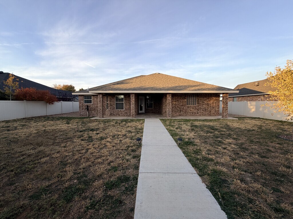 Welcome home to this beautifully maintained property located in one of Portales' most sought-after neighborhoods. Nestled in a quiet, private community and within walking distance to Valencia Elementary, this home offers comfort, quality, and convenience. Inside, you'll find an inviting open-concept layout with tile flooring, warm design details, and plenty of natural light. The kitchen features custom wood cabinetry, granite counters, a center island, and an easy flow into the dining and living areas—perfect for everyday living and gathering. The primary suite is spacious and thoughtfully designed, offering two separate walk-in closets with built-in shelving and a relaxing ensuite bathroom with double sinks, a soaking tub, and a separate tiled shower. Additional bedrooms are well-sized and versatile, ideal for guests, family, or office space. A dedicated laundry room and an attached two-car garage add everyday convenience. This home blends comfort and location in a peaceful neighborhood setting.