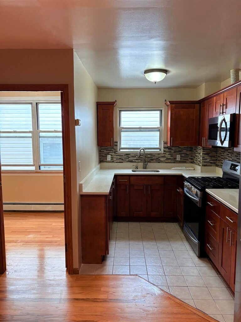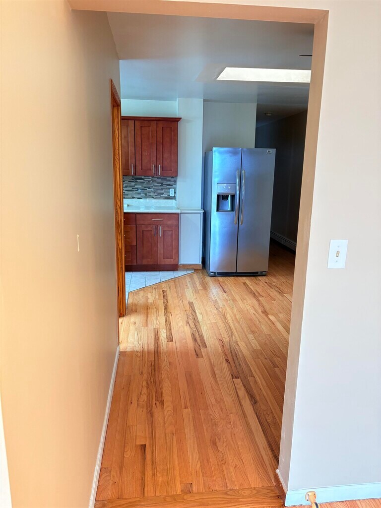 Recently renovated and move-in ready! This spacious and sun-filled 3 bedroom, 2 full bath apartment in Jersey City Heights offers a modern lifestyle with beautiful hardwood floors, a skylight, and abundant natural light throughout. The newly updated kitchen features granite countertops, stainless steel appliances, and plenty of cabinet space. Enjoy an open layout with a large living/dining area and direct access to a private back deck leading to the patio. Additional highlights include in-unit convenience, second-location, and one-car parking included. Perfectly located with easy access to NYC transportation (bus & PATH within 20 min), plus shopping, parks, restaurants, and cafes right at your doorstep. Don’t miss this rare find combining comfort, style, and convenience in the Heights!