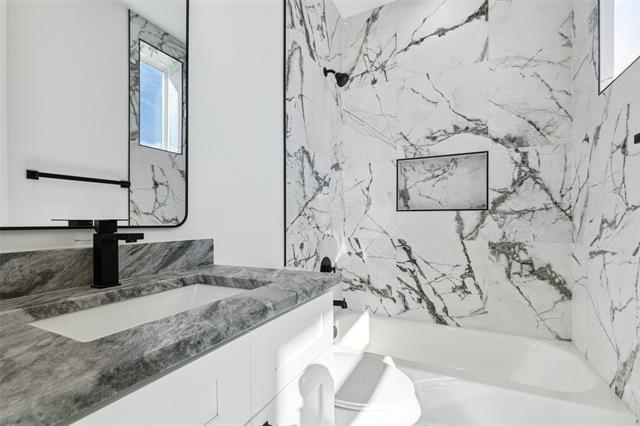 STUNNING TOWNHOME OFFERED FOR LEASE! Fantastic location - walk to the charming Bishop Arts restaurants & shops. Luxe finishes and surprising upgrades! Tall ceilings and abundant large windows allow natural light to flood the home. Blonde high quality wood laminate floors create a seamless flow thoughout! The Kitchen's warm, plentiful cabinets, striking leathered granite counters, Bosch 6 burner gas range and a large pantry will delight any cook! We include a refrigerator and washer, dryer!! Drybar equipped with a wine fridge, and half-bath in the living area - perfect for entertaining! The Primary bedroom and 2nd bed are on the 3rd floor. The ensuite bath in the Primary is anchored by a striking wall of tile! Fantastic 4th floor - partially covered rooftop deck with downtown views, and 4th bedroom or 2nd living with French doors and ensuite bath! Tankless water heater, EV charger too!