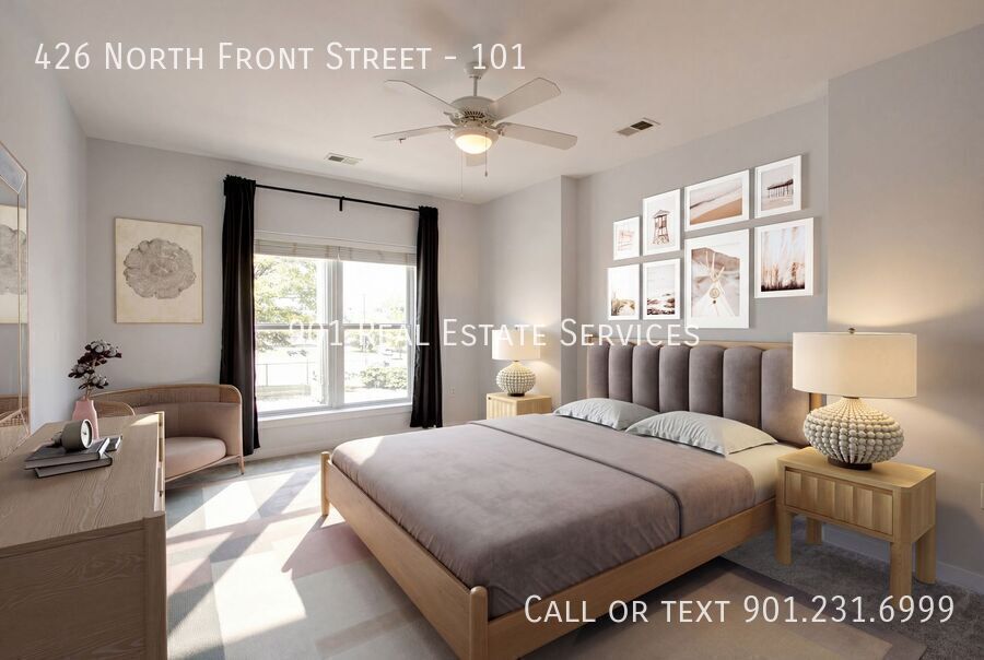 This 3 bedroom, 2 bathroom condo offers over 1,600 square feet of living space and is ideally located in Downtown Memphis, close to St. Jude, Mud Island, Main Street, and more. Situated on the first floor (second level on the front side of the building), this home combines convenience with beautiful river views. The spacious living area features hardwood flooring, a fireplace, and direct access to a private balcony overlooking the Mississippi River. The open kitchen includes stainless steel appliances, dual ovens, and a large breakfast bar with plenty of space for seating. The primary bedroom offers a large dressing closet and a private en suite bathroom with a glass-enclosed shower and soaking tub. Two additional bedrooms are generously sized and share a full bathroom. Gated parking includes one reserved space, along with a private storage room for added convenience. Virtual tour: SCHEDULE A SHOWING: Professionally managed by 901 Real Estate Services *Additional fees may apply. Please see below. Some photos may be virtually staged.* *Typical fees for approved applicants, not including security deposit: one-time admin fee of $250; one-time pet fee & monthly pet rent, determined by PetScreening per pet; any fees associated with specific communities or buildings. Advertised rent price per month includes $40 Resident Benefit Package. Please ask the Property Manager for more information.* **Avoid scams: We do not post our properties on Facebook Marketplace or Craigslist and will never ask you to pay anything through CashApp, Zelle, or Venmo.** Beautiful Hardwood Flooring Carpeted Bedroom(s) Ceiling Fan(s) Ceiling Fans In Bedrooms Central Heat & Air Close To Memphis Law School Close To Ms River Controlled Access Building Fireplace Gas Parking 1 Gated Reserved Space Washer/Dryer Full Size