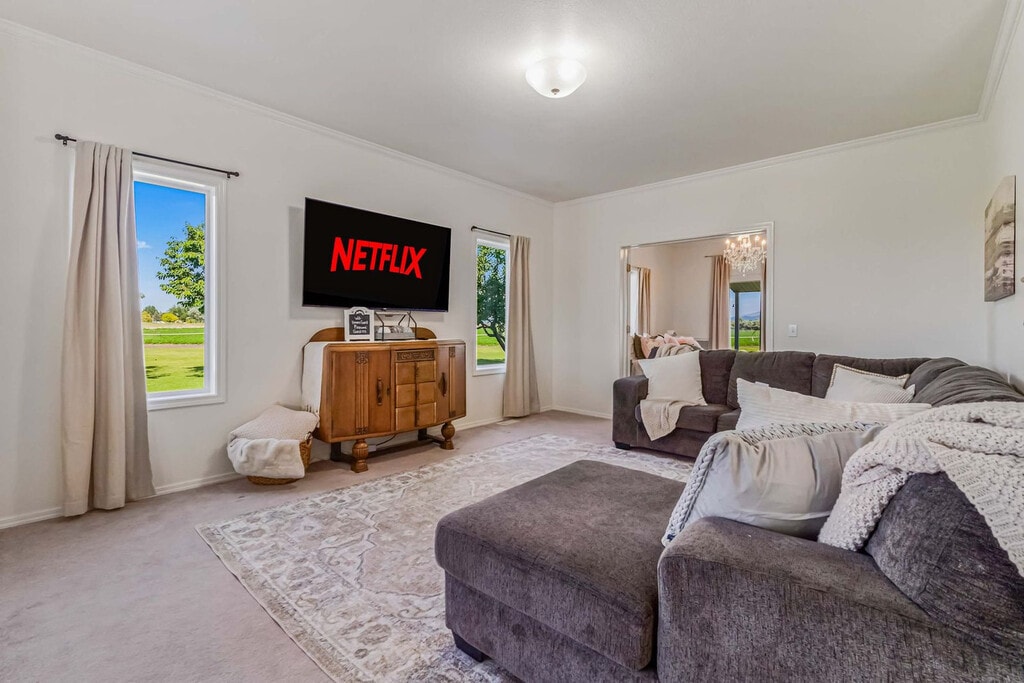 Discover this expansive 6-bedroom retreat in Heyburn, Idaho, perfect for accommodating groups of 28 or more. Enjoy breathtaking mountain and river views from this serene escape, ideal for reunions, weddings, and relaxing getaways. The property offers a private hot tub, an outdoor fire pit, a Nintendo game room, and a Waldorf-style playroom, providing entertainment and relaxation for all ages. Guests are required to digitally agree and sign house rules and the rental agreement, which will be emailed once the booking is received.