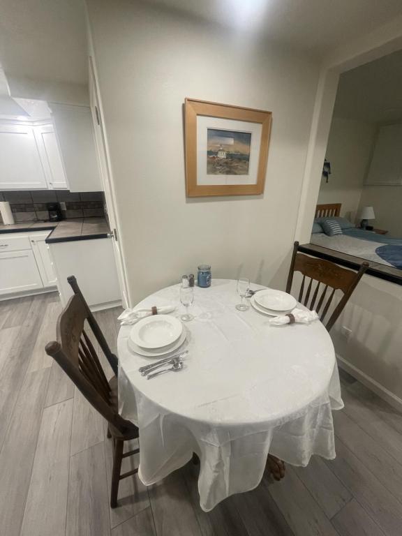 FULLY FURNISHED STUDIO AVAILABLE OCT 1 Welcome to your cozy and fully furnished 800 square foot studio! This charming space is a brand new remodel and features 1 open air bedroom, 1 bathroom, and all the amenities you need for a comfortable stay. The open concept layout includes a fully equipped kitchen with all kitchenware, a full-size bed, a smart TV, and a washer and dryer for your convenience. Enjoy your morning coffee on the balcony with a table and chairs overlooking the peaceful surroundings. Your private driveway ensures easy parking and added security during your stay. Stay connected with high-speed wifi and unwind after a long day with your favorite shows on the smart TV. The full-size fridge and stove make meal preparation a breeze, and the coffee pot is perfect for your morning pick-me-up. With all linens provided, you can simply pack your bags and move right in to this turnkey property. Please note that smoking is not allowed in this property, ensuring a clean and healthy environment for all guests. Whether you're in town for business or pleasure, this fully furnished studio house has everything you need for a relaxing and enjoyable stay. Book your stay today and experience the comfort and convenience of this charming retreat. Apply online at